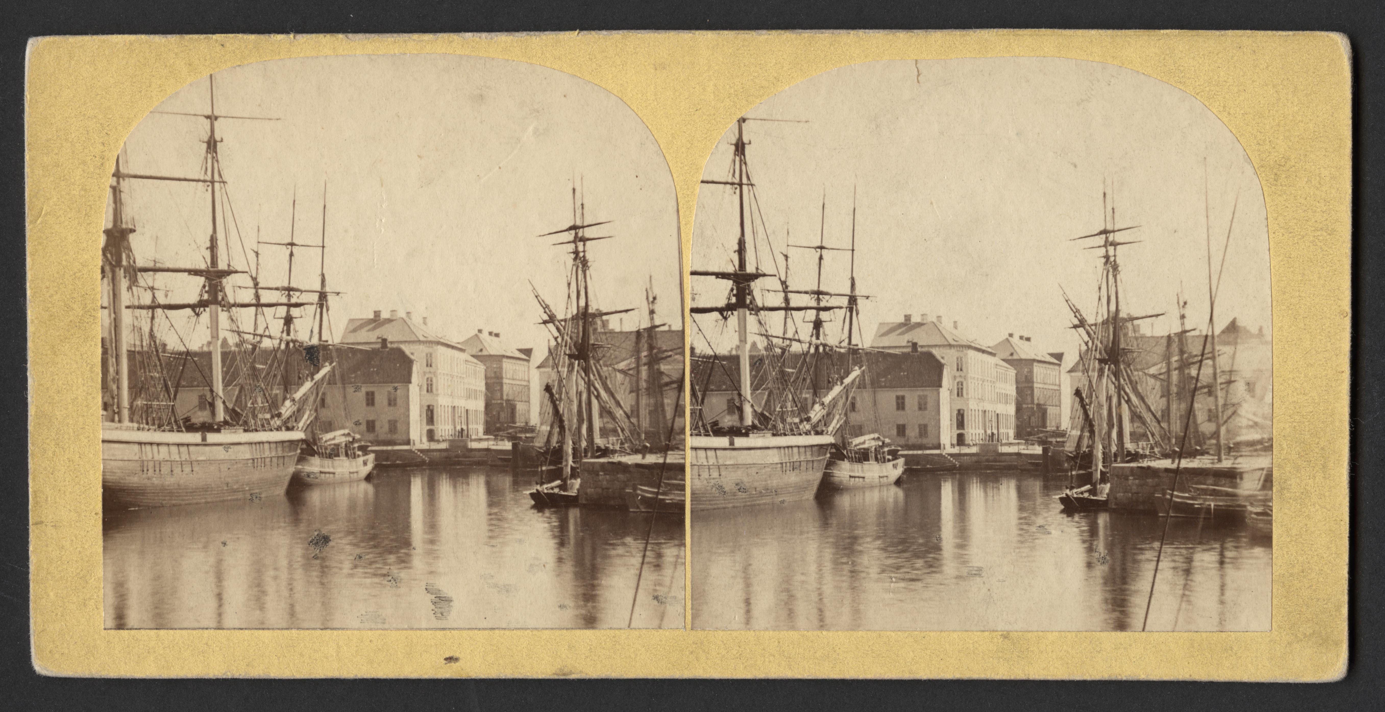 Suellshamnen, Inre Hamnen med gamla Tullhuset MHM 7736:26, stereoskopbild.