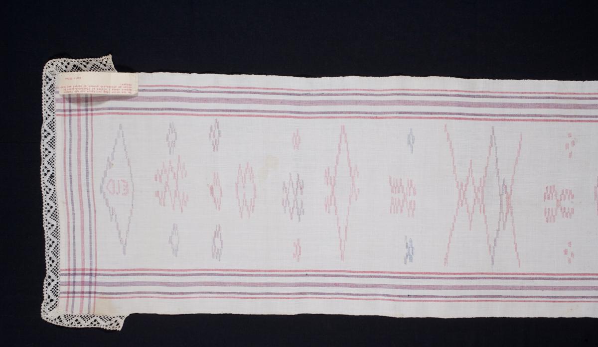 Likhandkläde av linne med dekor i rött och blått bomullsgarn