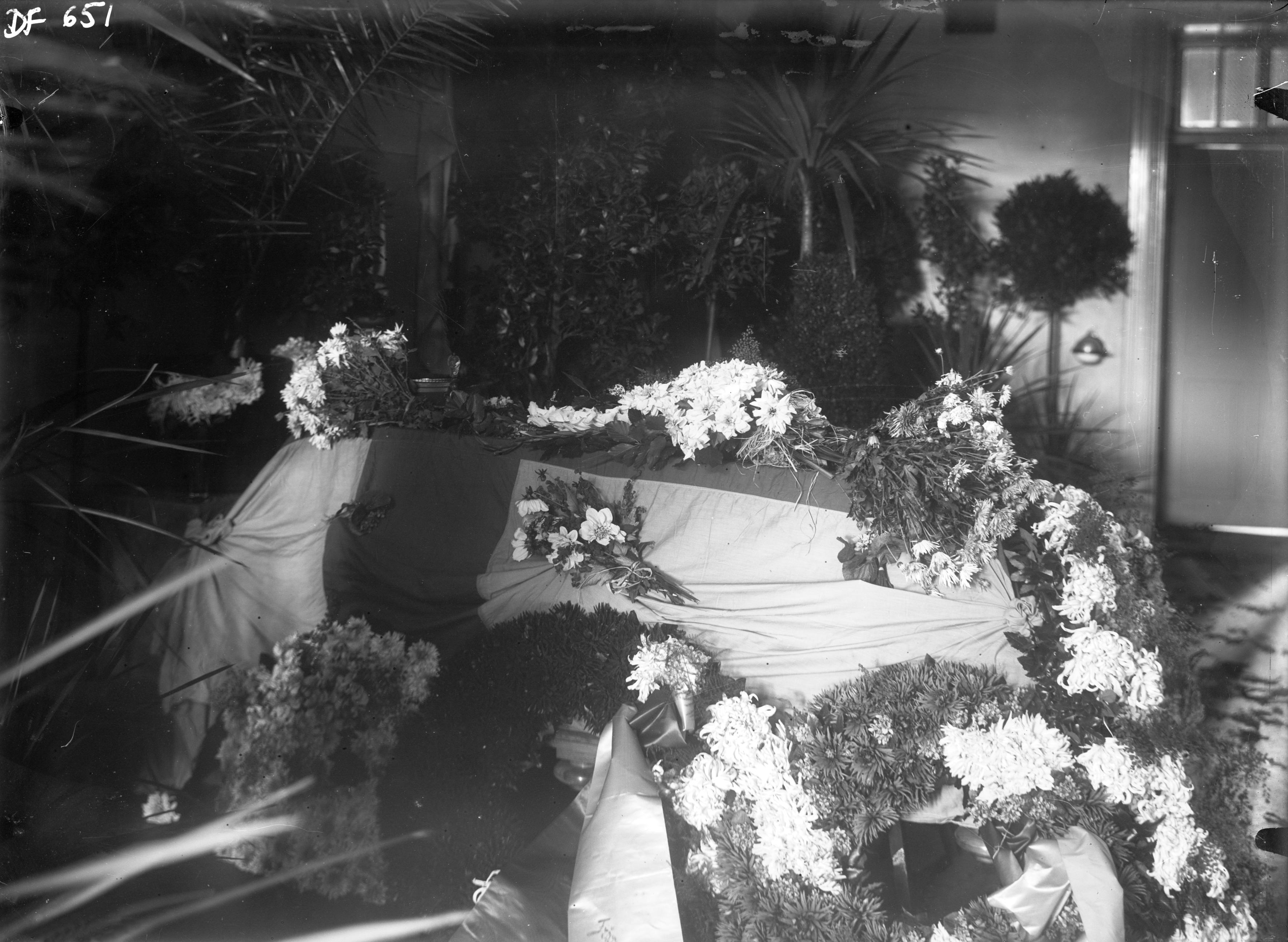 Överste E.af Sandebergs kista i likrummet på kasernen