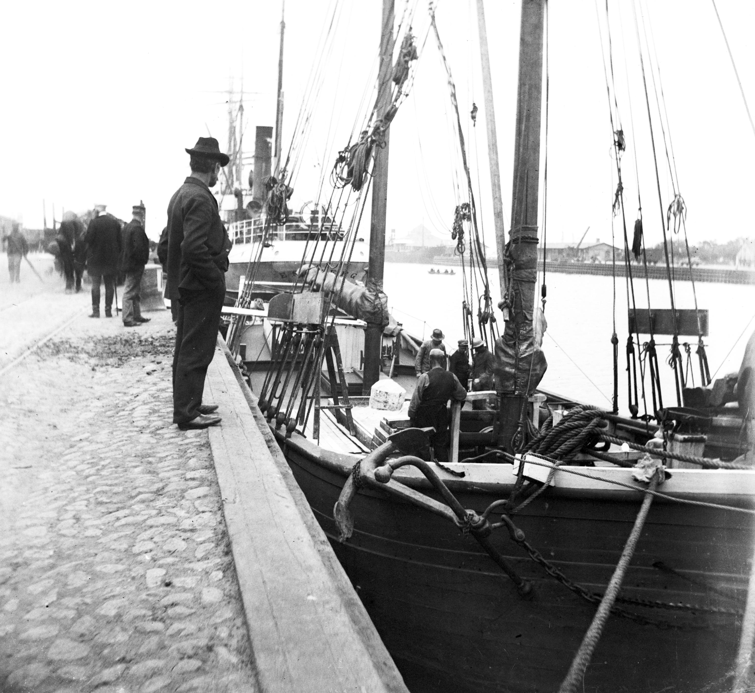 Segel och ångbåtar vid Västra Kajgatan, sedermera Hjälmaregatan