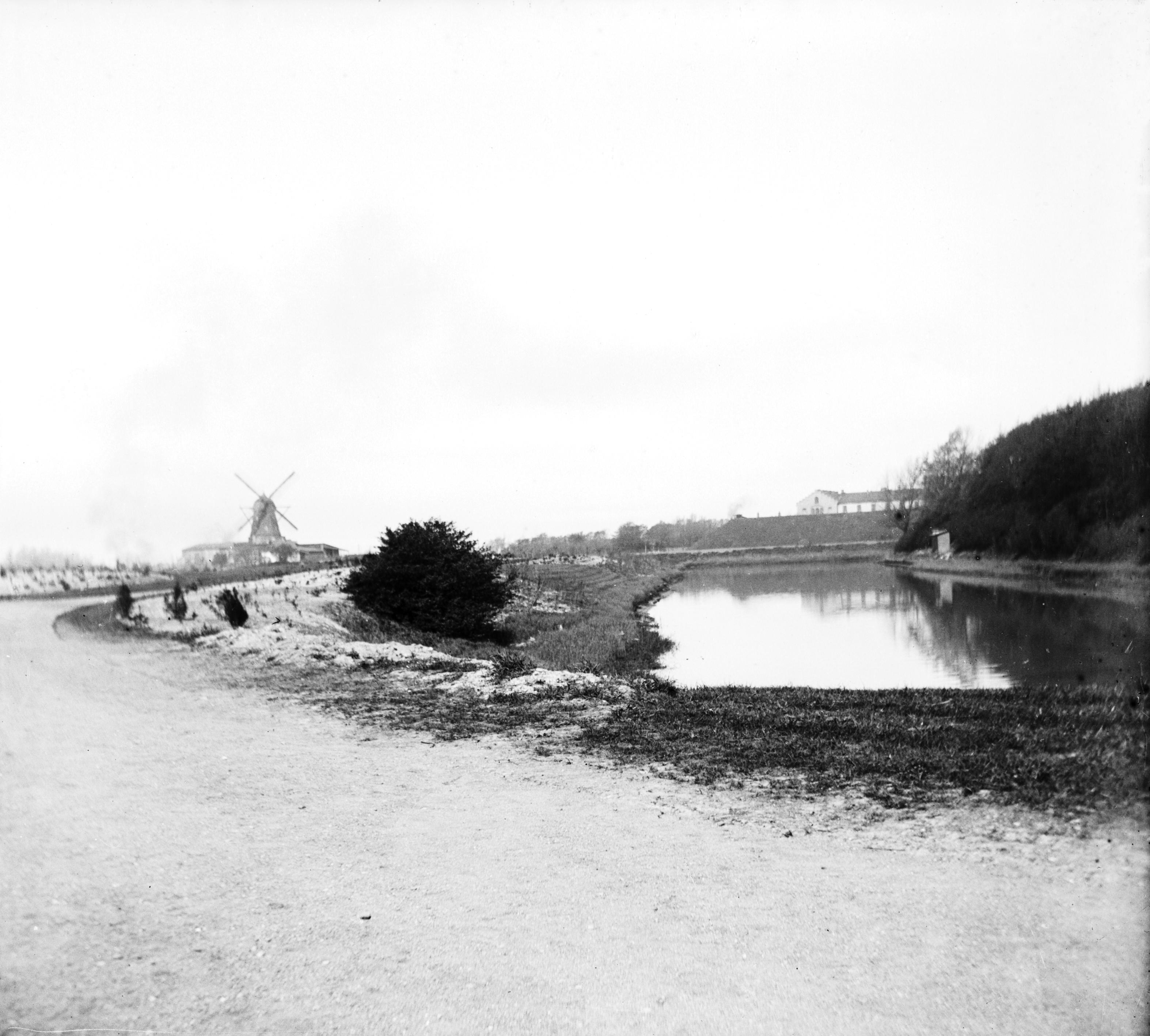 Del av Slottsparken med slottsmöllan i bakgrunden.