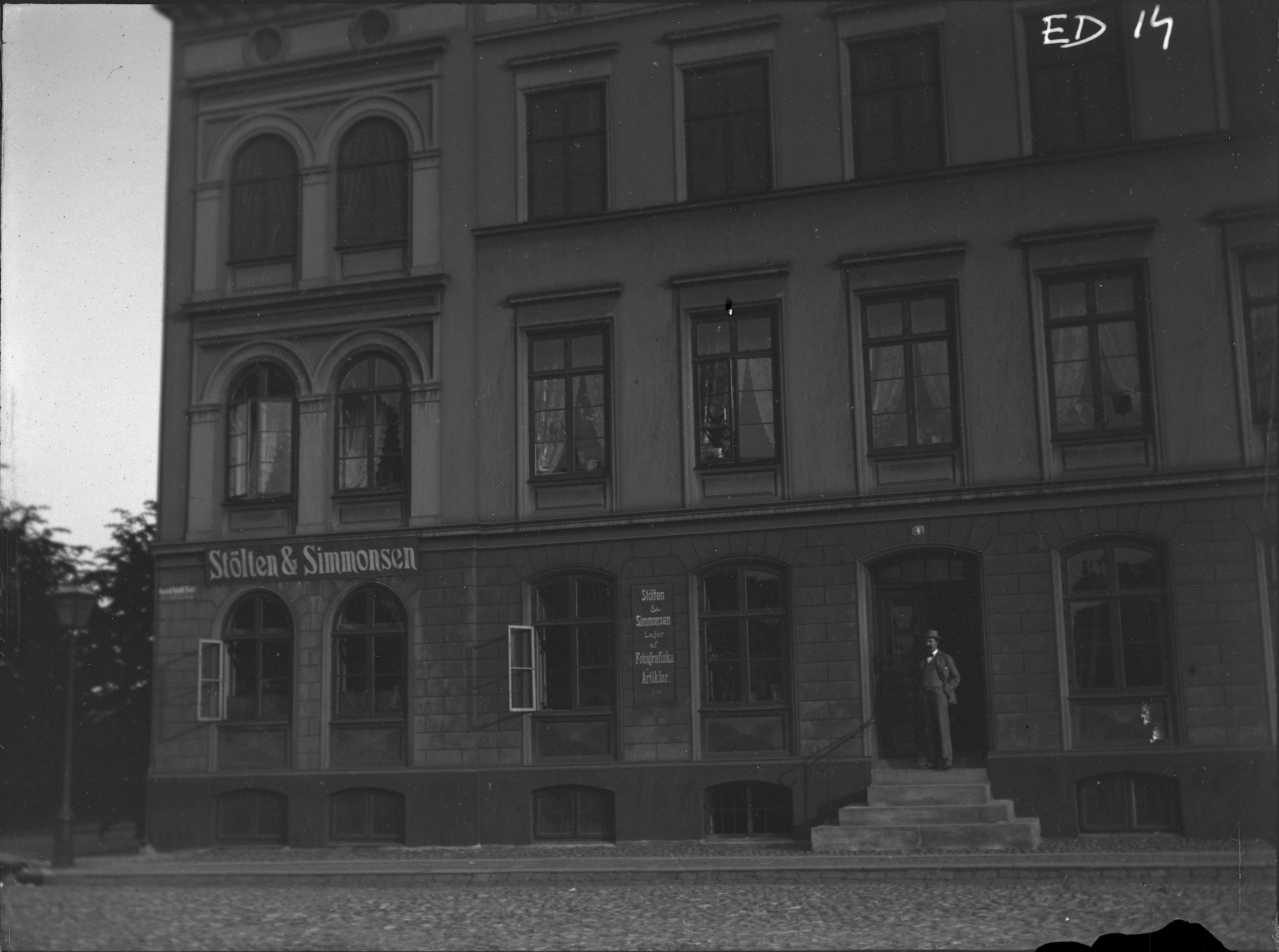 - Stölten & Simmonsen på Gustav Adolfs torg vid hörnan mot Kanalgatan, "Lager av fotografiska artiklar", affär som sålde fotografisk utrustning.