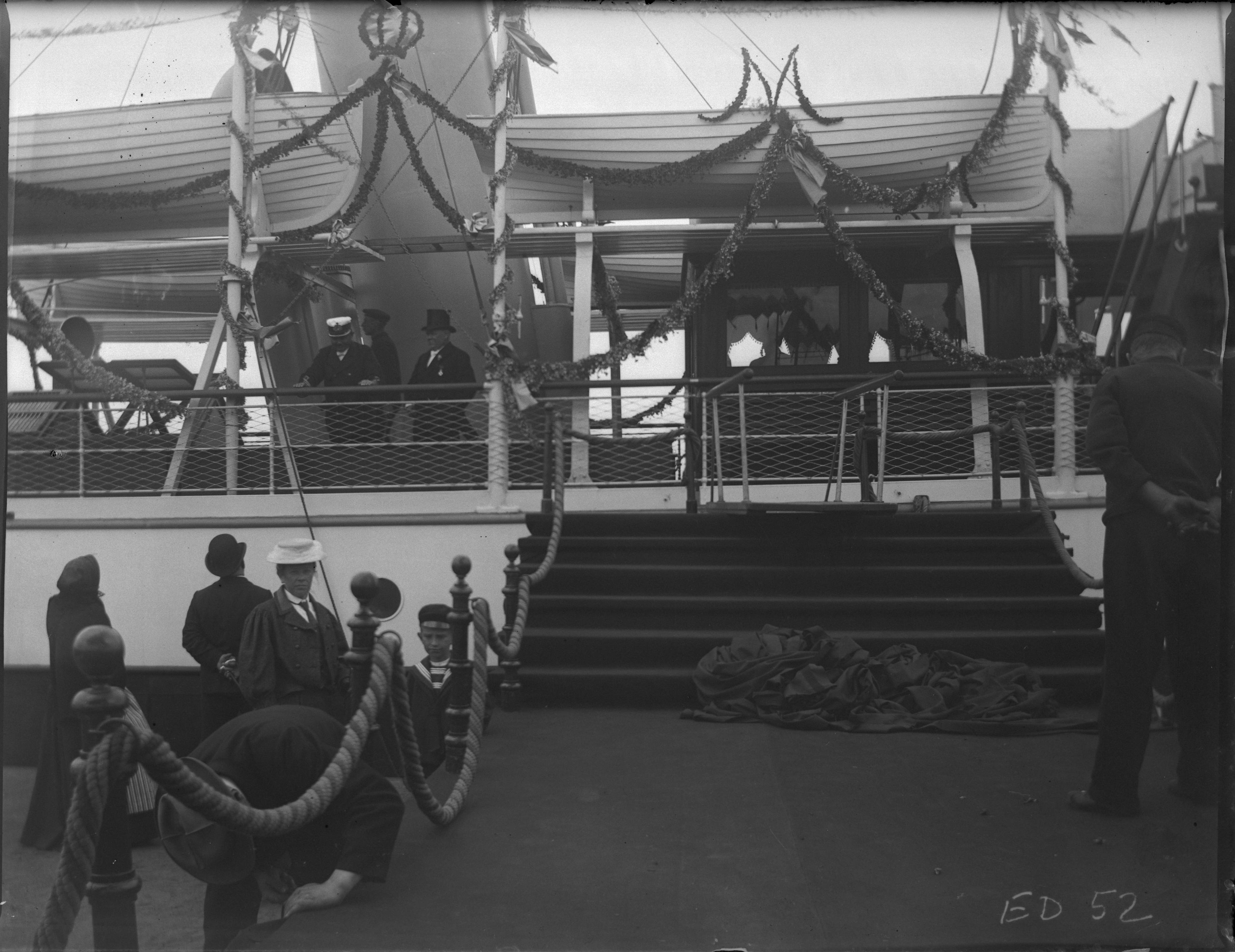 Prins Gustav och prinsessan Margaretas landstigning, Magda Lassen (?), festdekorerat fartyg