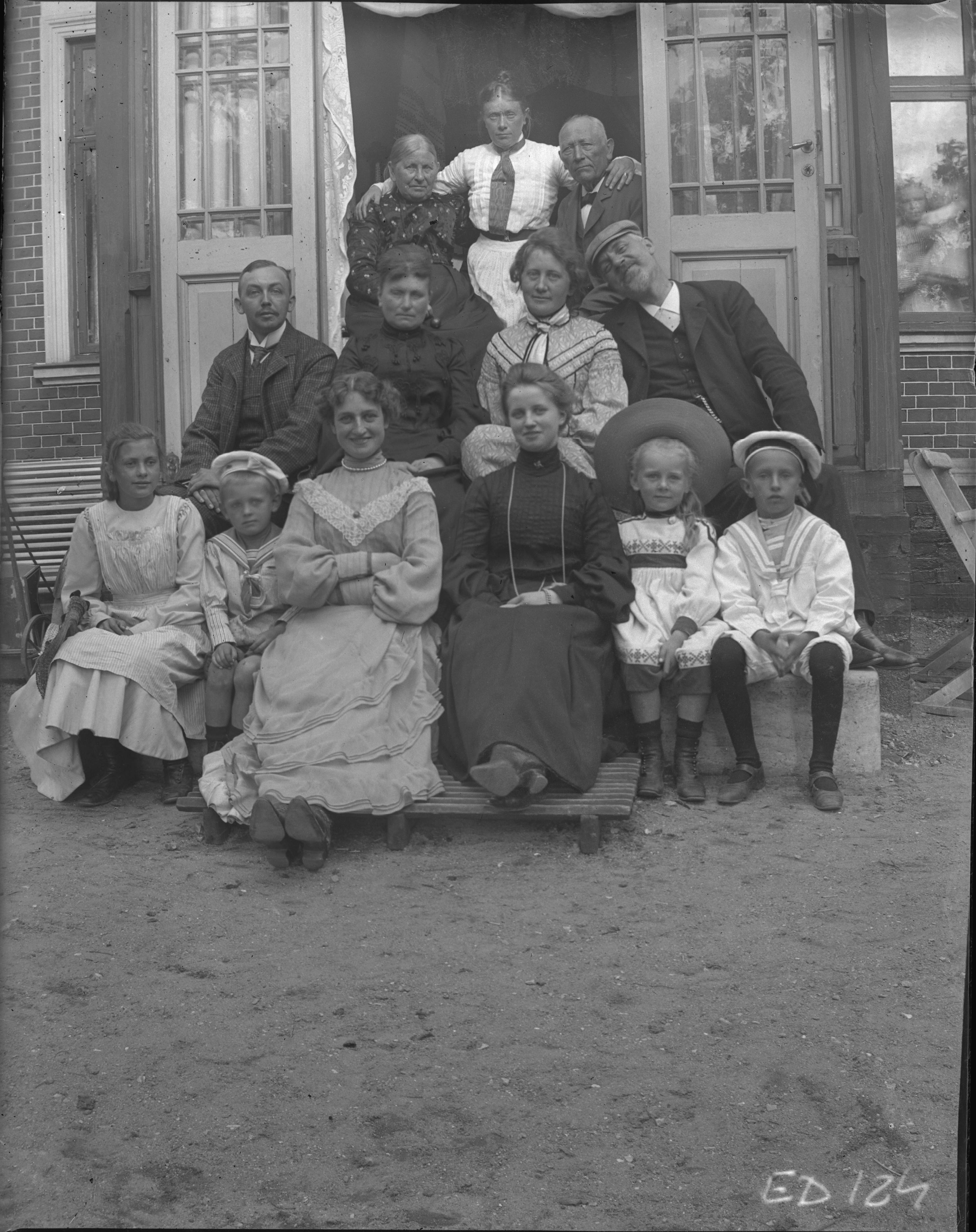 Gruppbild, t.v. Högst upp Elna söderberg, Magda Lassen, Carl Fredrik Fritz Söderberg och okända
