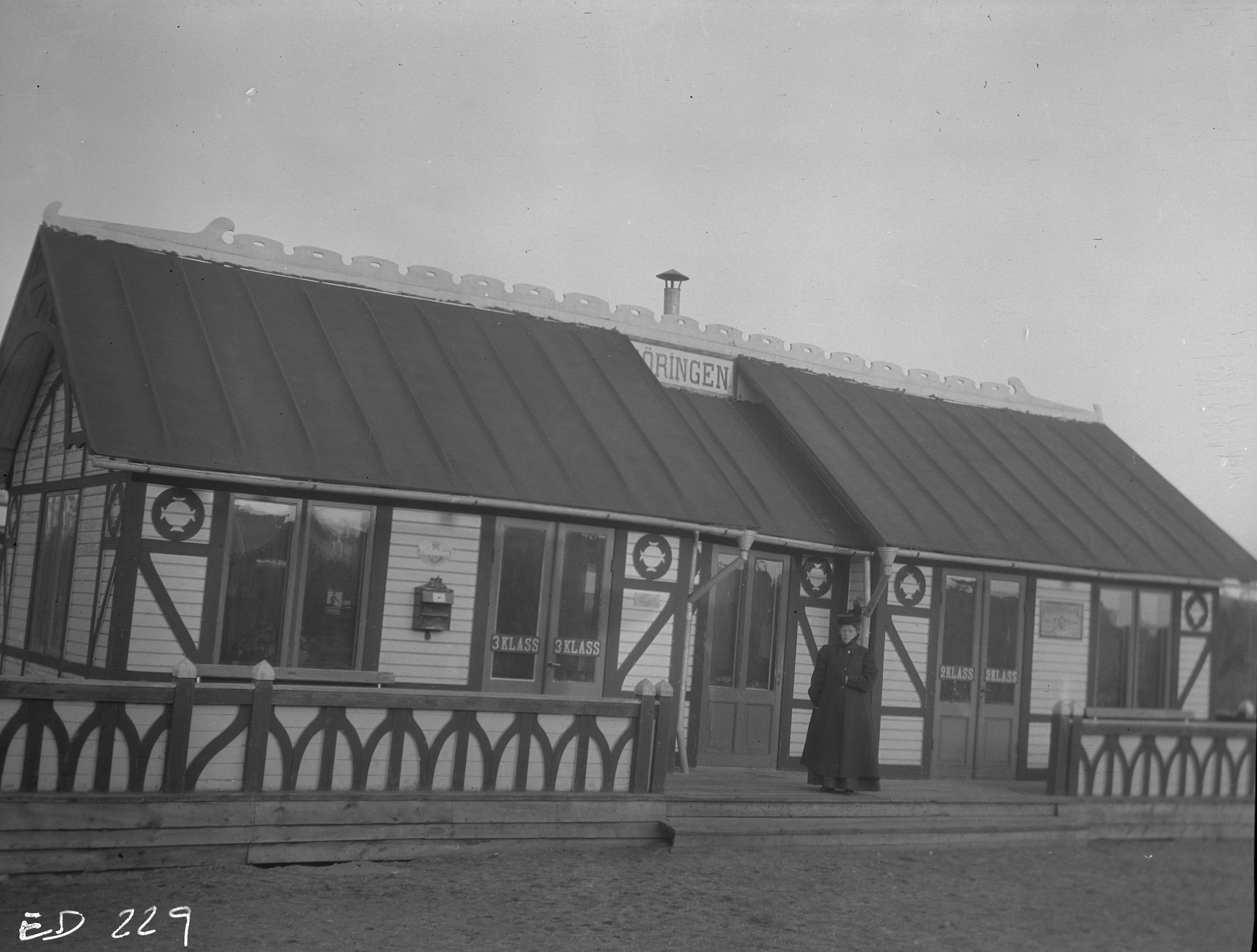- Magda Lassen framför stationshuset i Göringen i Dalarna, med andra och tredje klassens väntsalar.