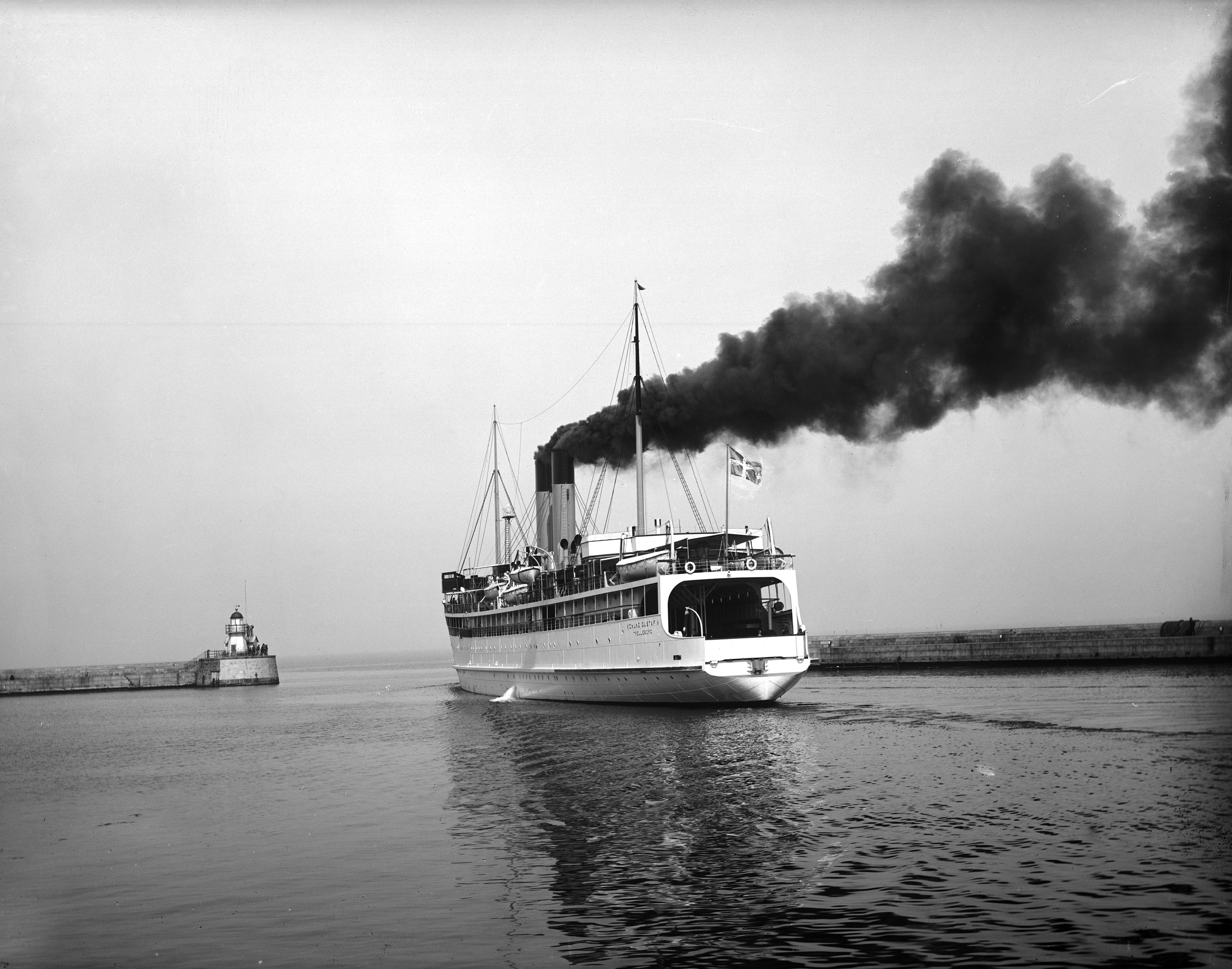 - Ångfärjan "Konung Gustaf V" i yttre hamnen.