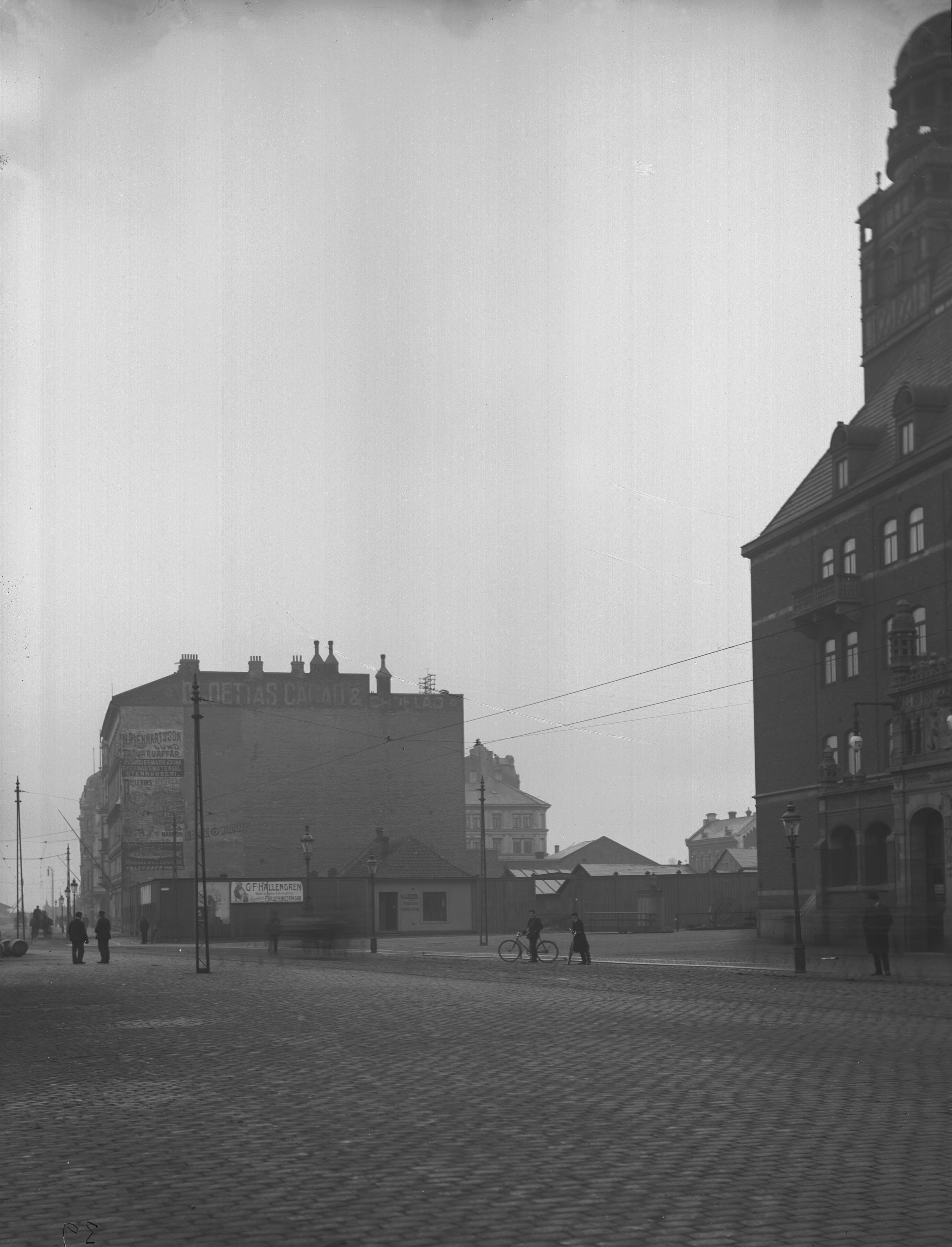 Beijerska tomten vid Skeppsbron och Carlsgatan, kvarter 6, Ran. Firman G. & L. Beijer grundades år 1866 av Bröderna Gottfrid och Lorens Beijer. Ombildades till aktiebolag år 1908. Foto: Hovfotograf Roikjer, 1909.