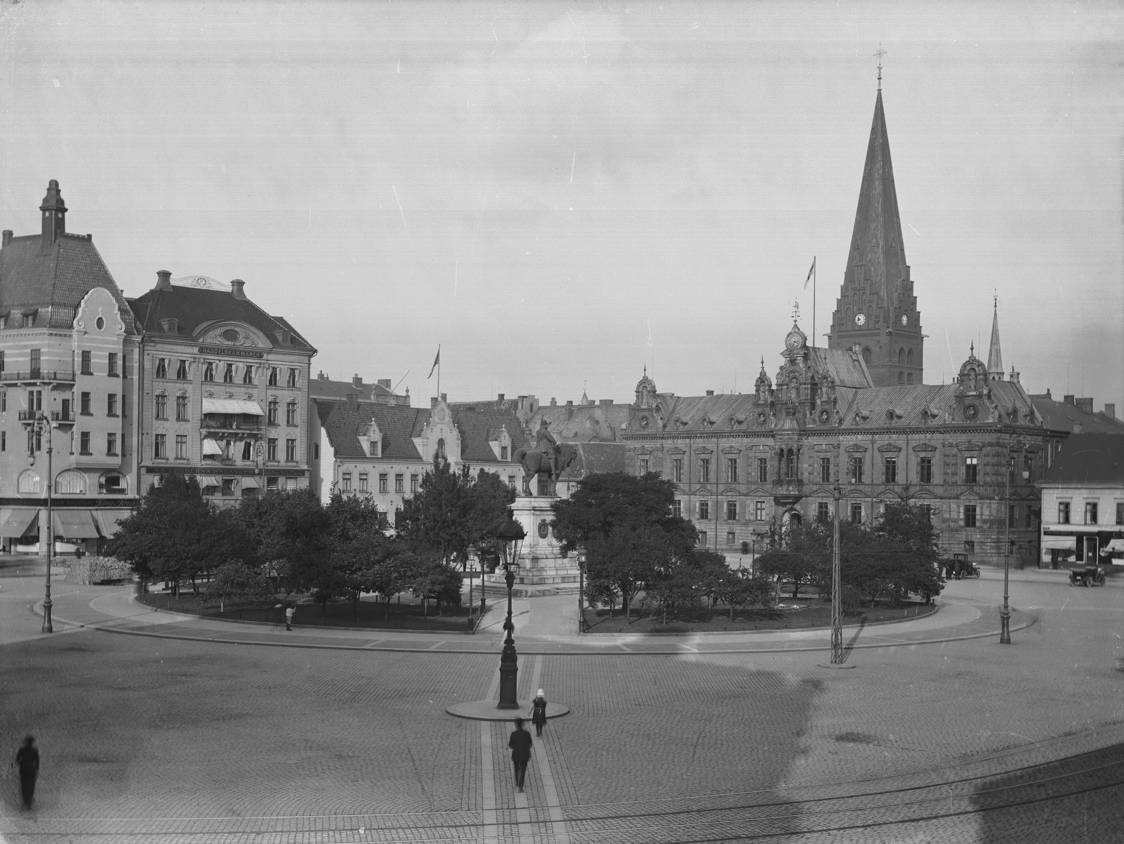 Stortorget med rundningen. rådhuset och S:t Petri kyrka.