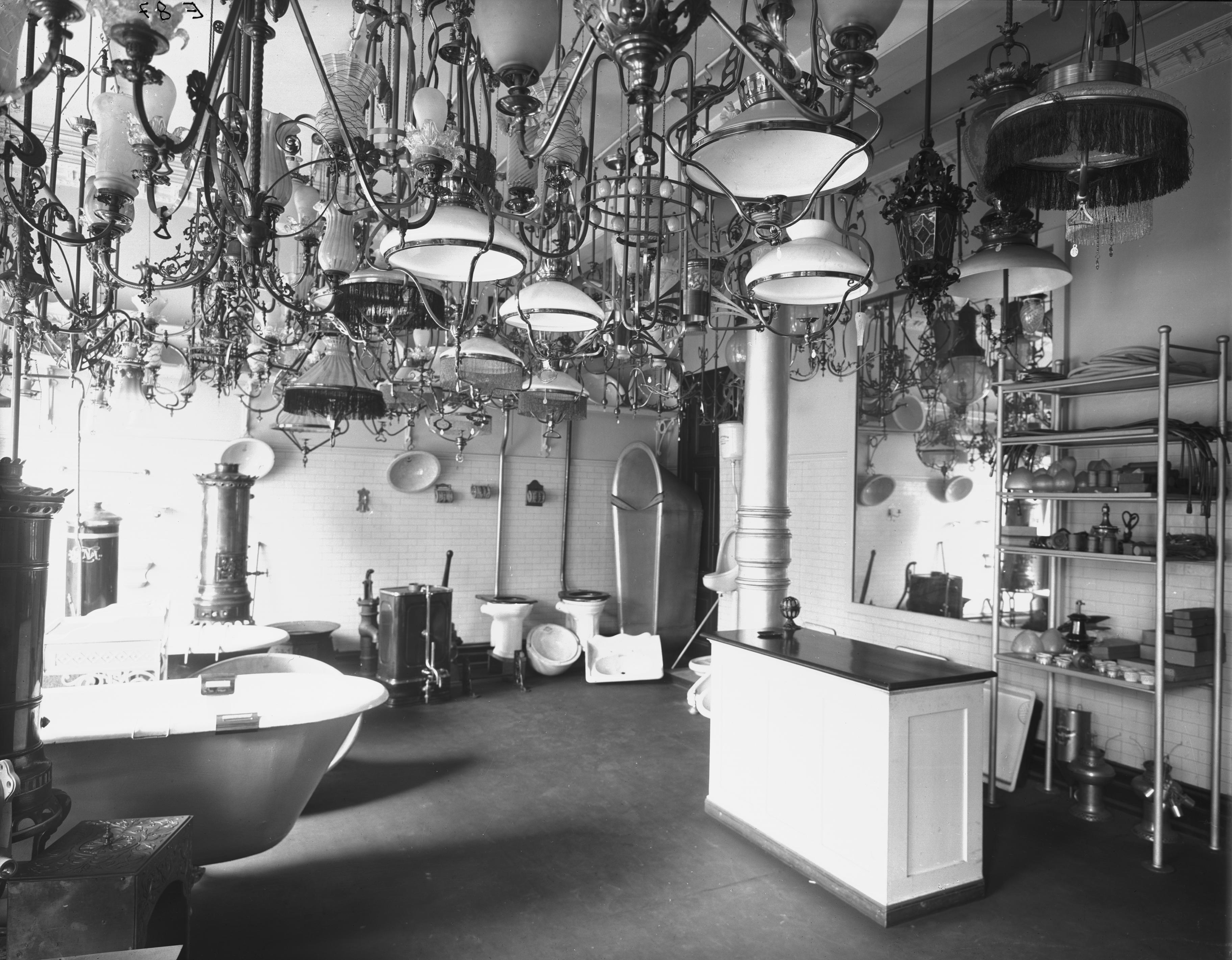 Interiör från Joh. Sjöströms försäljningslokal. Djäknegatan 17