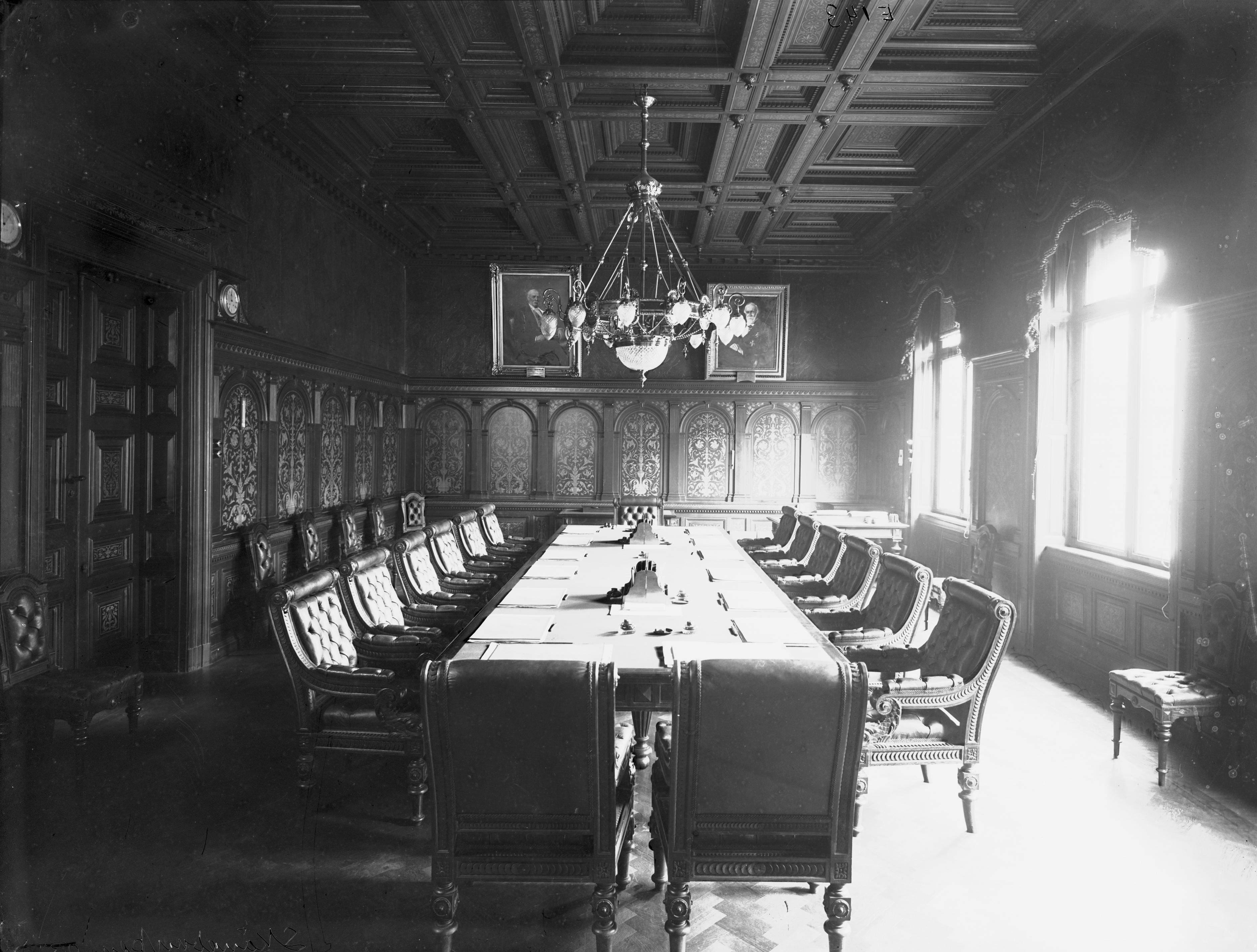Interiör från Skånes Enskilda Bank. Styrelserum. Bruksgatan 2, kvarter 28 Kronan. 1903.