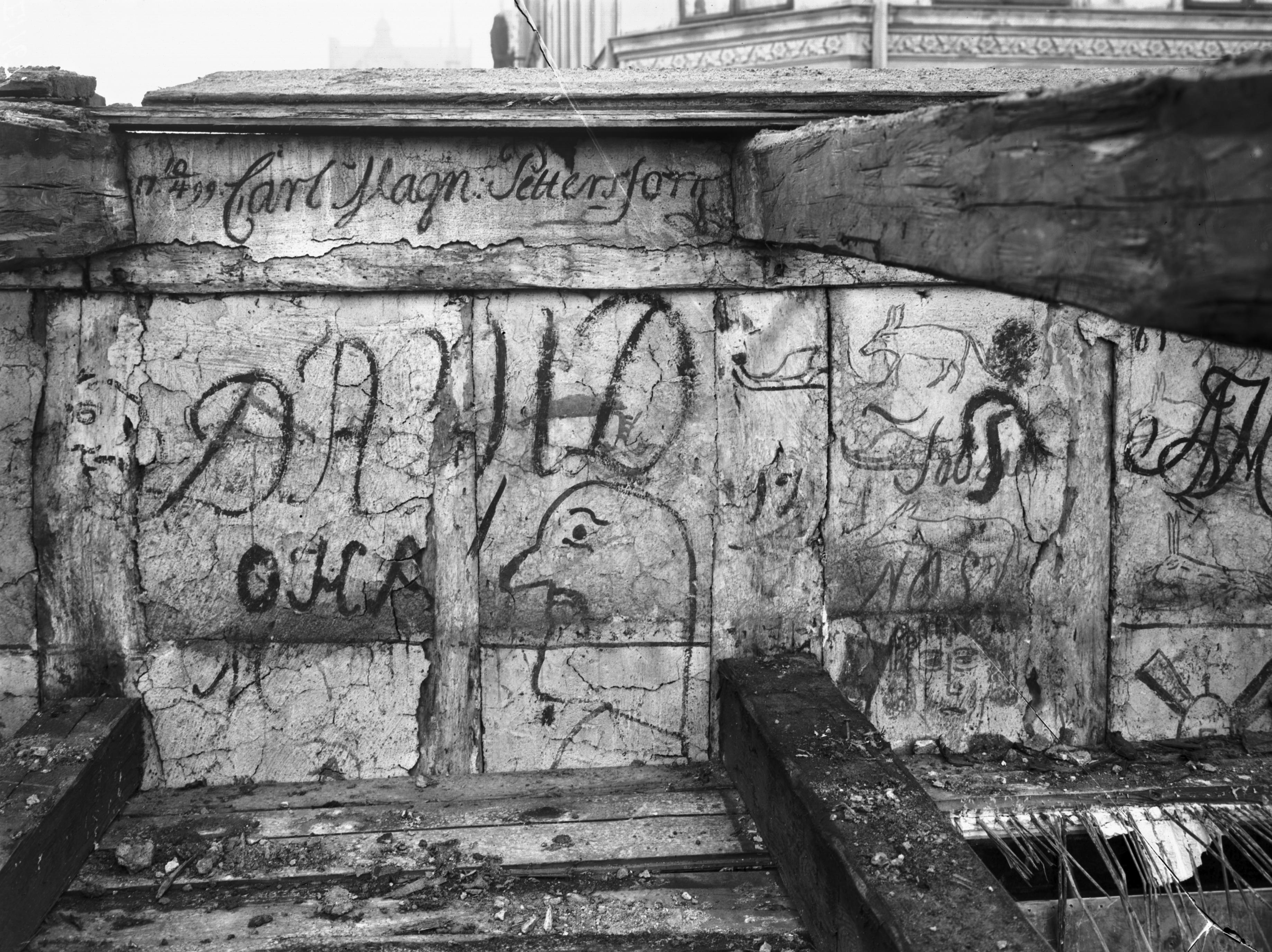 Rivning av Nyströmska huset. Stortorget 11 (numera 17). Väggmålning signerad Carl Magnus Pettersson 1799