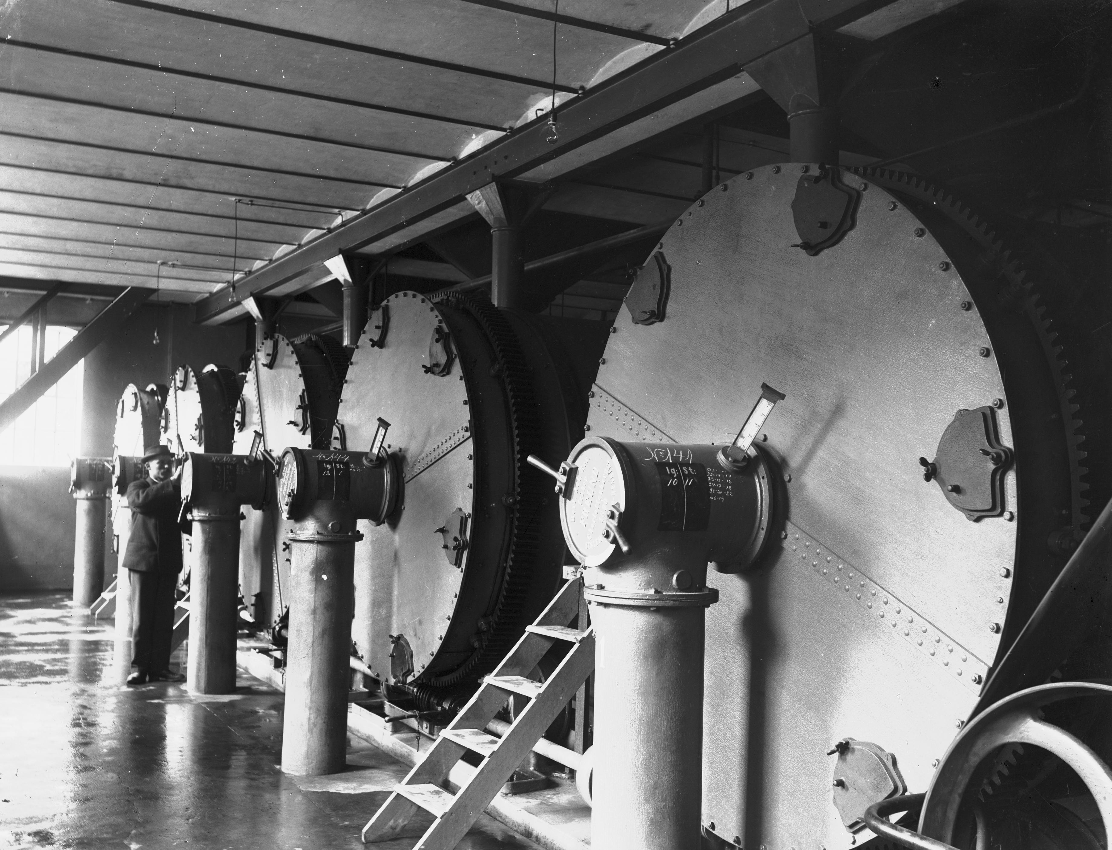 Malmö Bryggeri AB, Andréelundsvägen 1. Interiör, malt tromlor.
