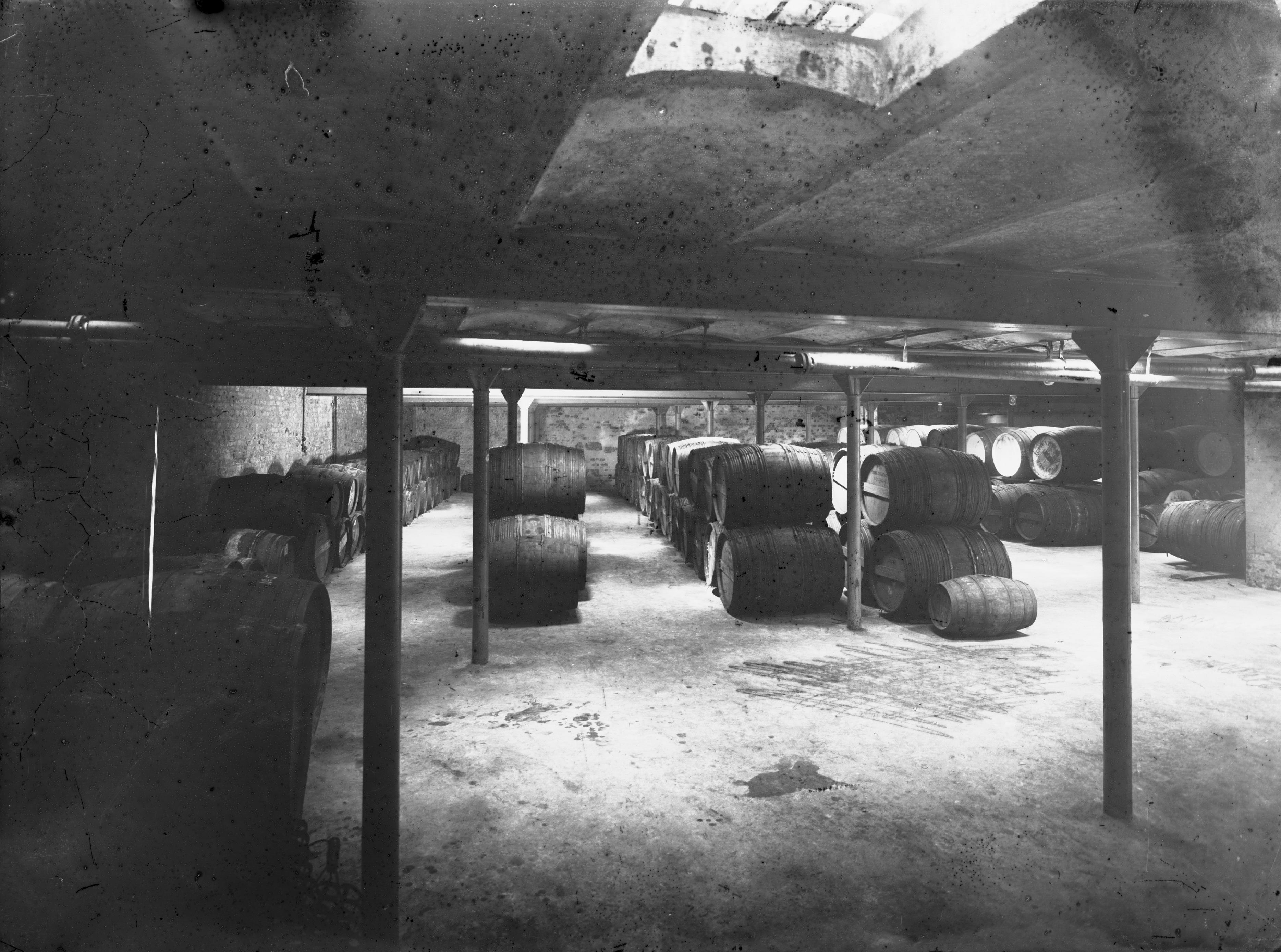 Interiör från vinfirman Faxe & Söner. Larochegatan 4 (lagerinredning med tunnor).