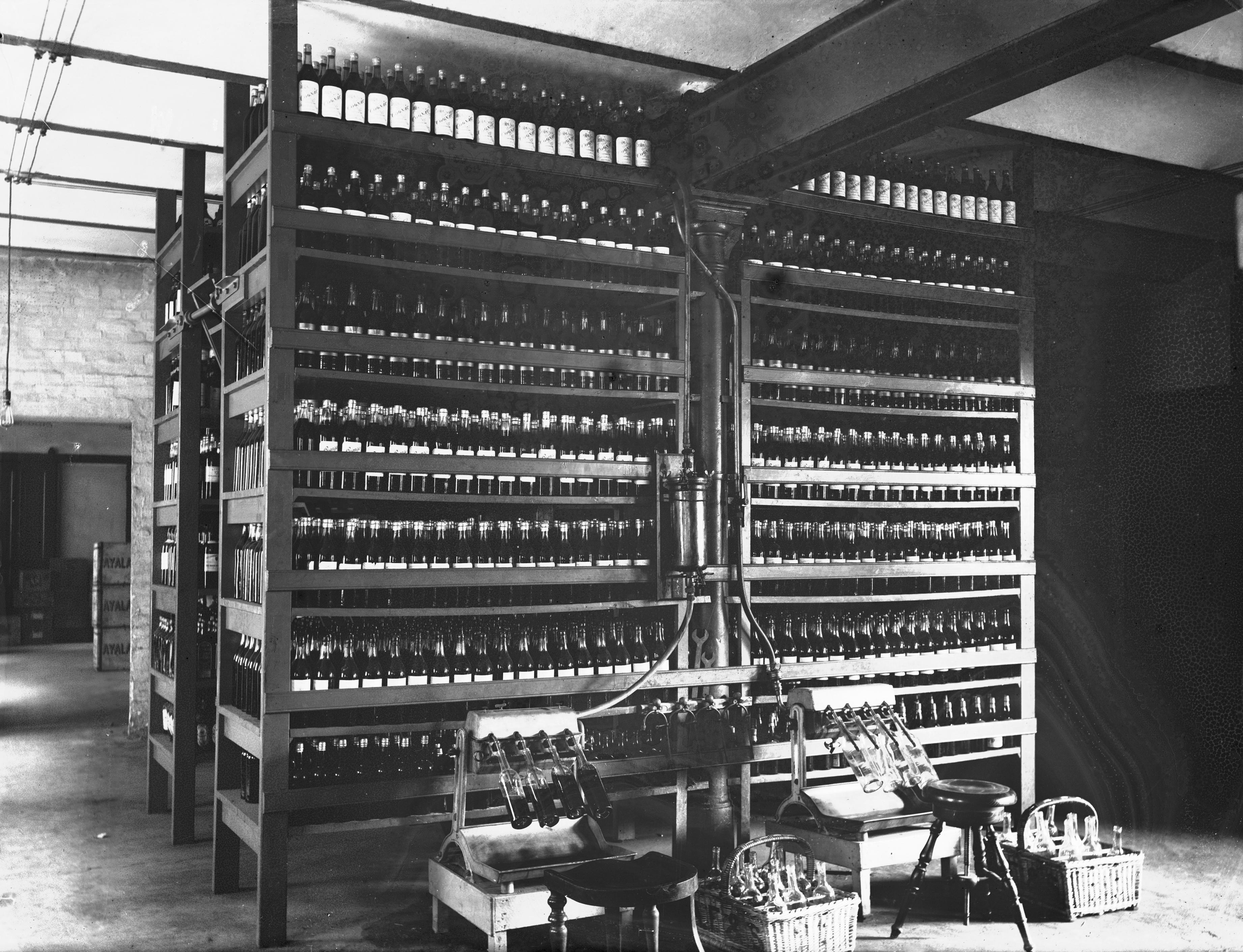 Interiör från vinfirman Ad. Faxe & Söner. Larochegatan 4. (Varulager)