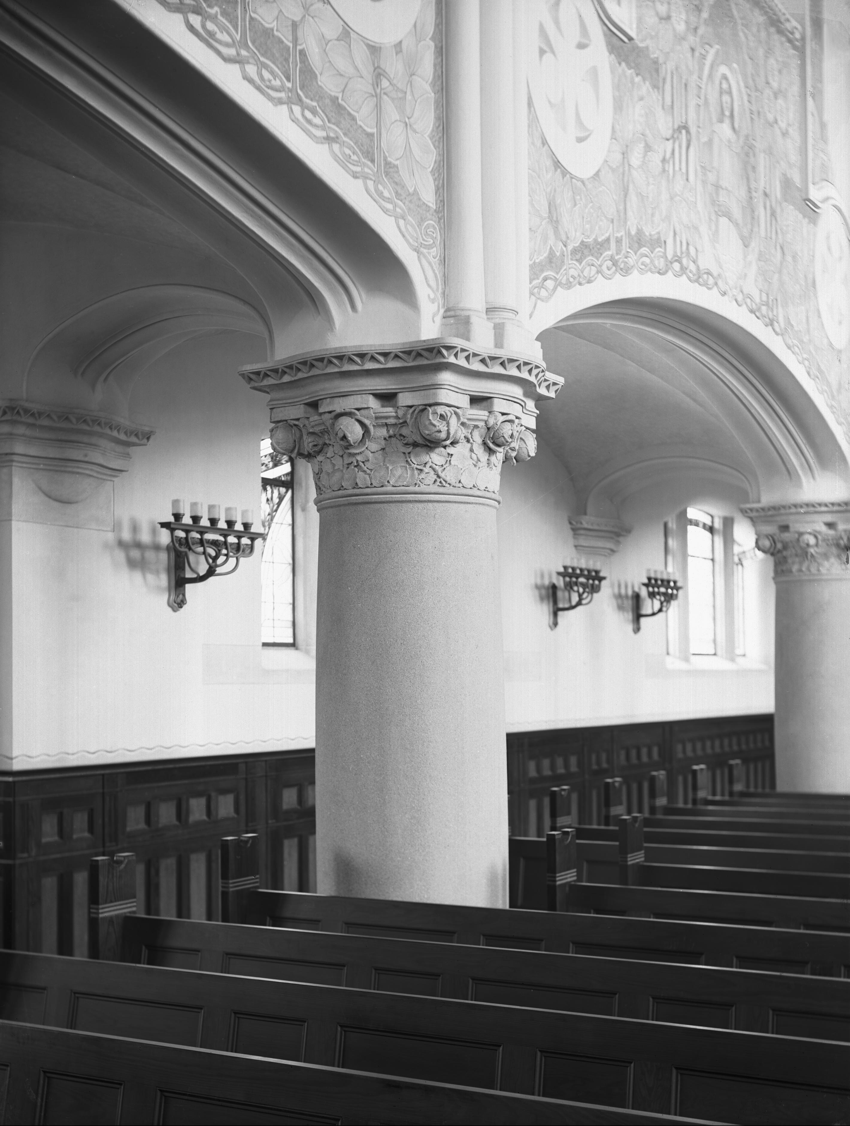 EF 000485 :: kyrka, kyrkointeriör, kyrkoskulptur, kyrkbänk