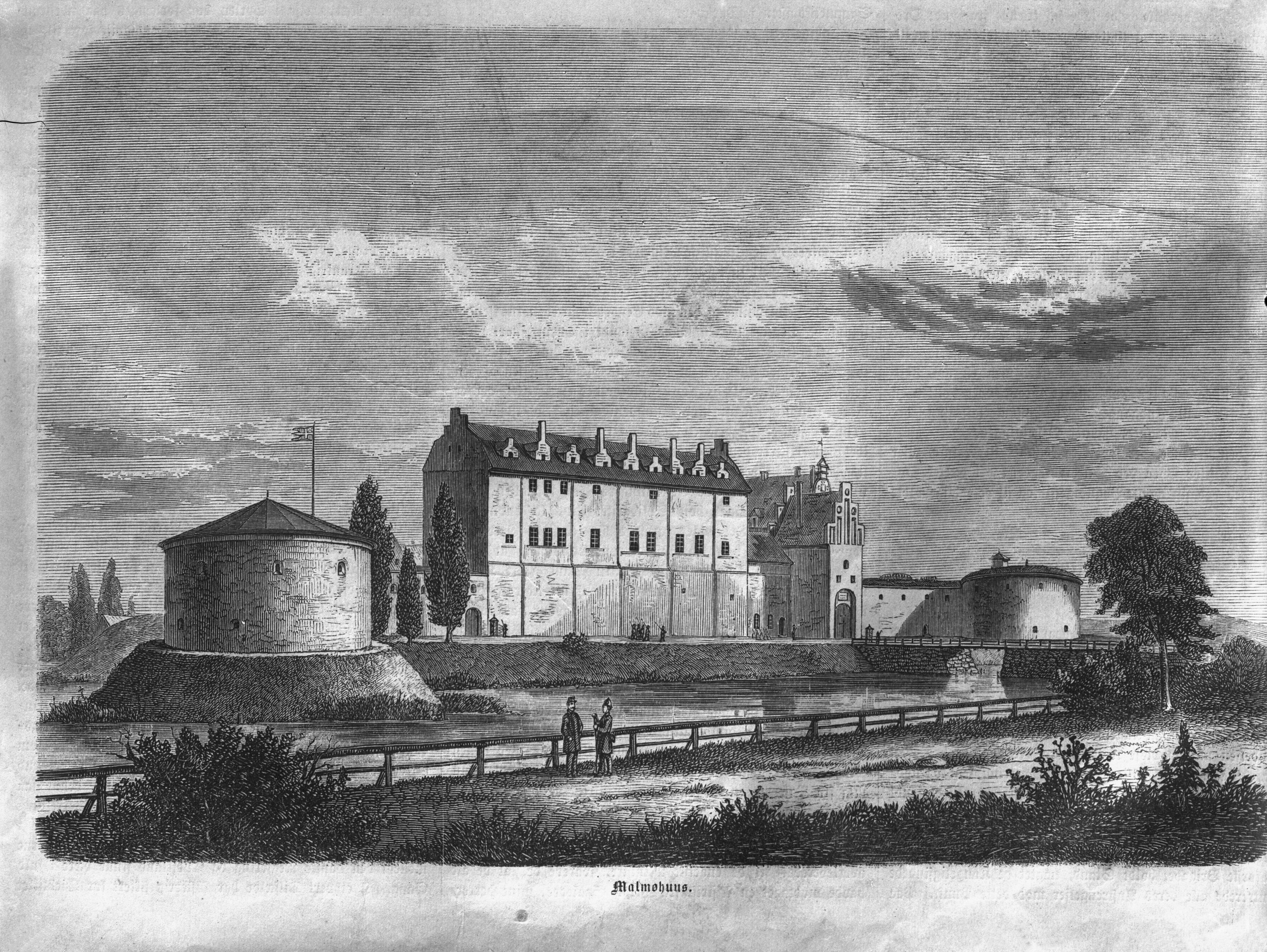Malmöhus Slott från nordost innan branden. Efter teckning.