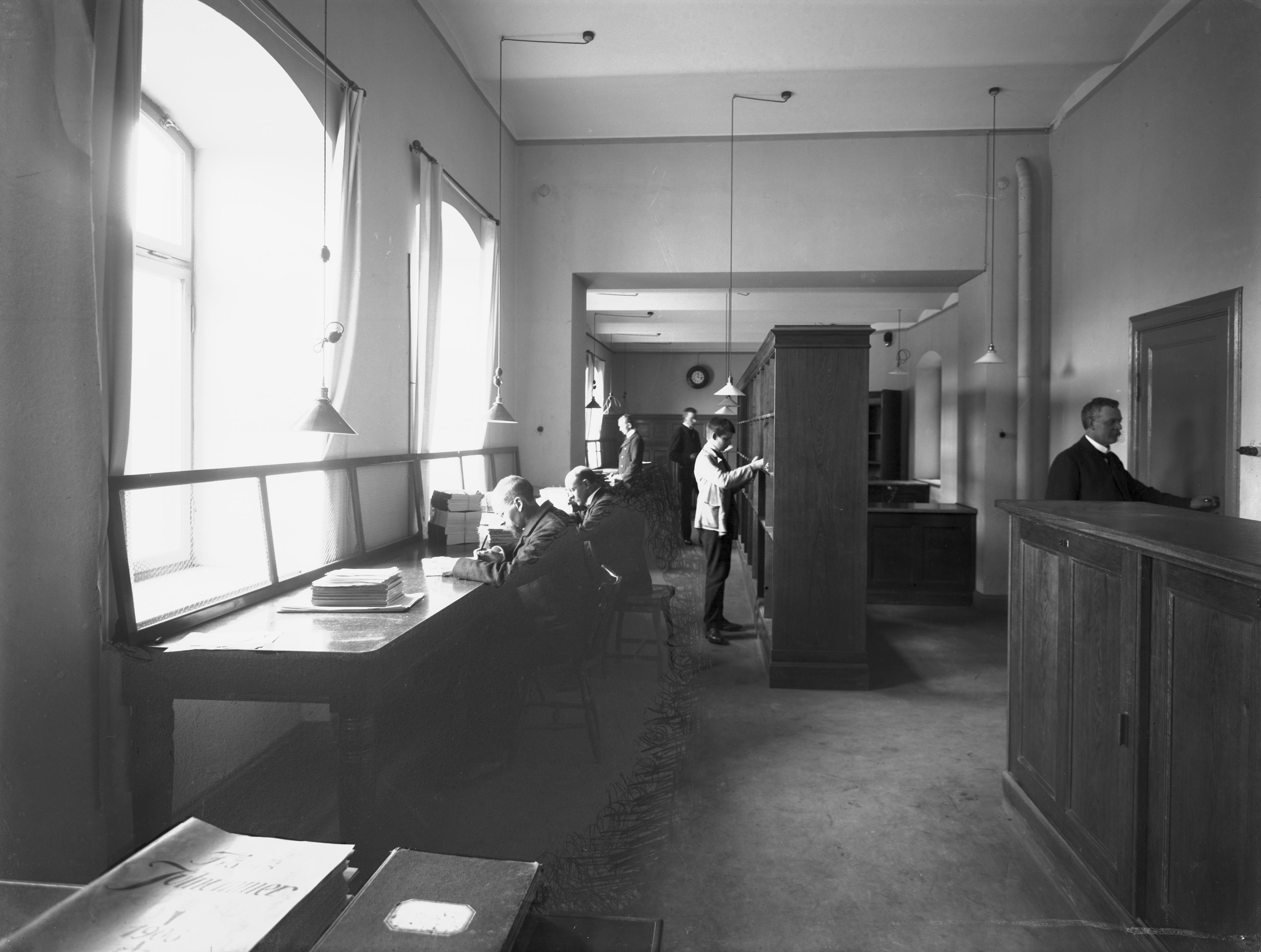 EF 000570 :: bank, postkontor, postpersonal, inomhusbelysning, ur, elledning