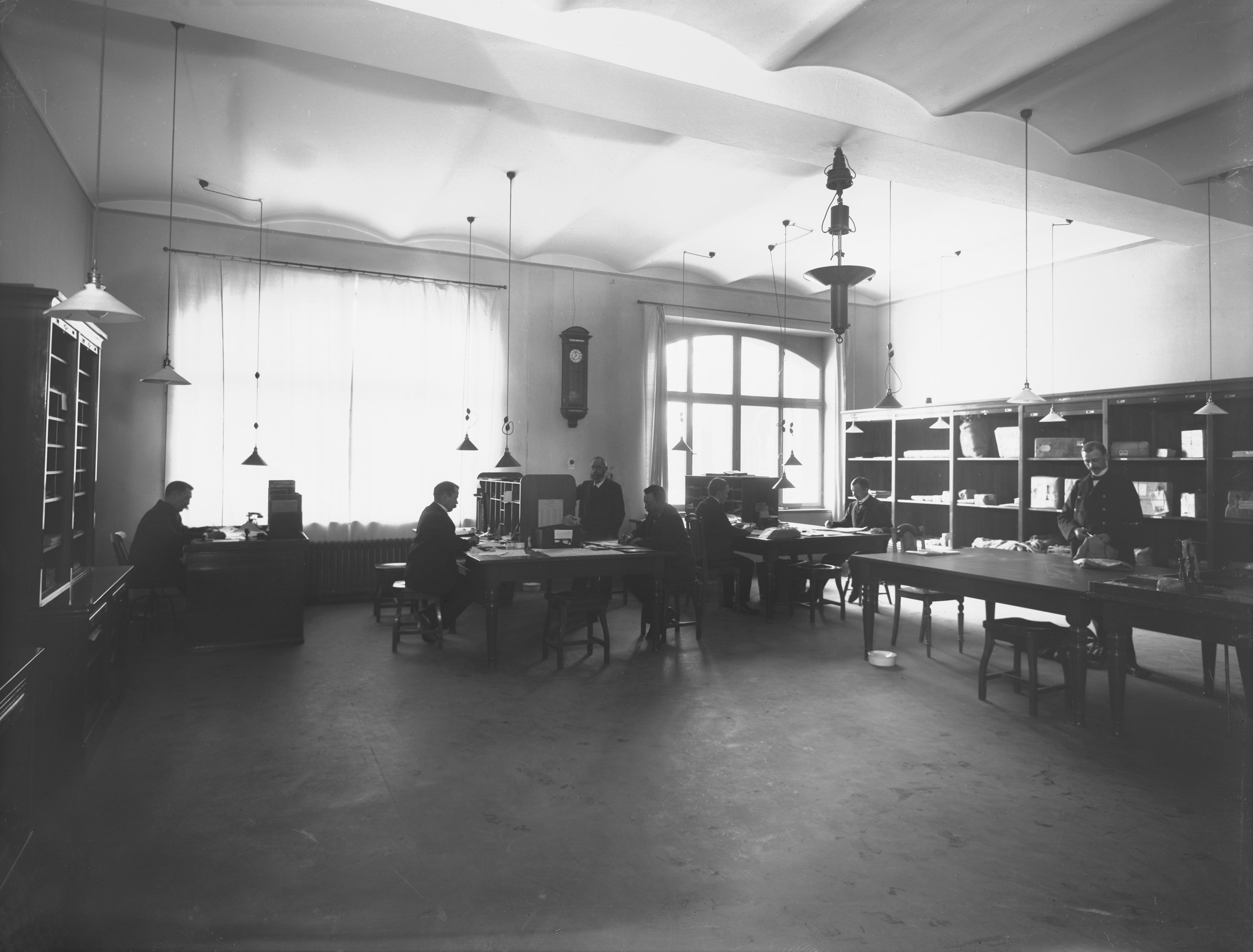 postkontor; postväsen; inomhusbelysning; ur