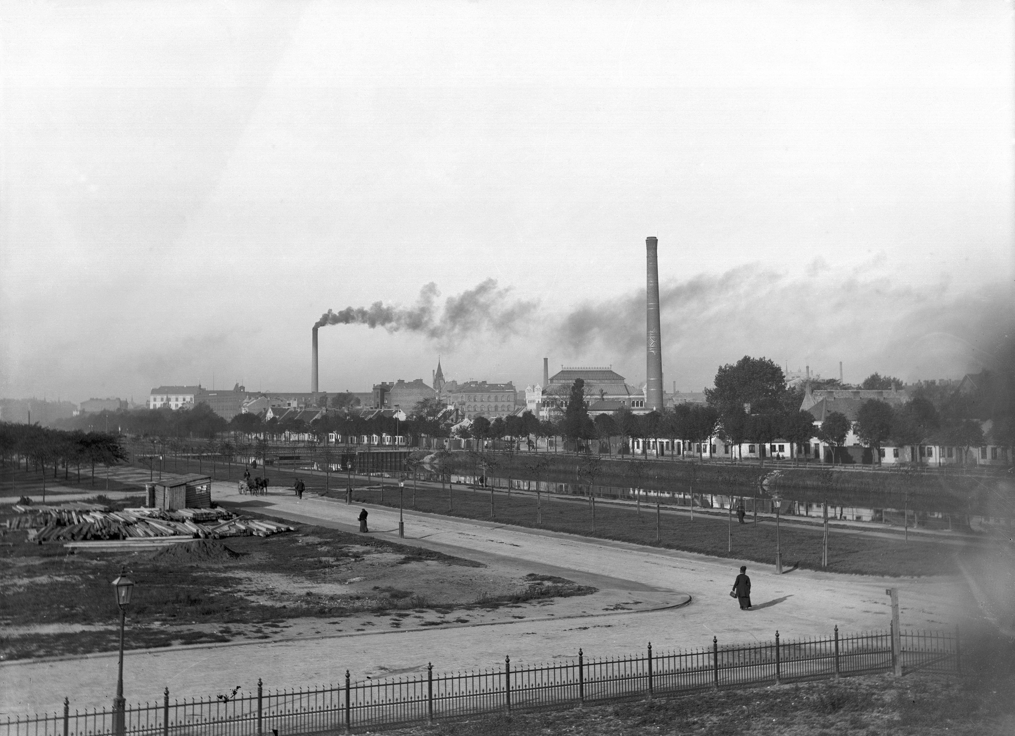 EF 000628 :: stadsbebyggelse, kanal, gata, skorsten