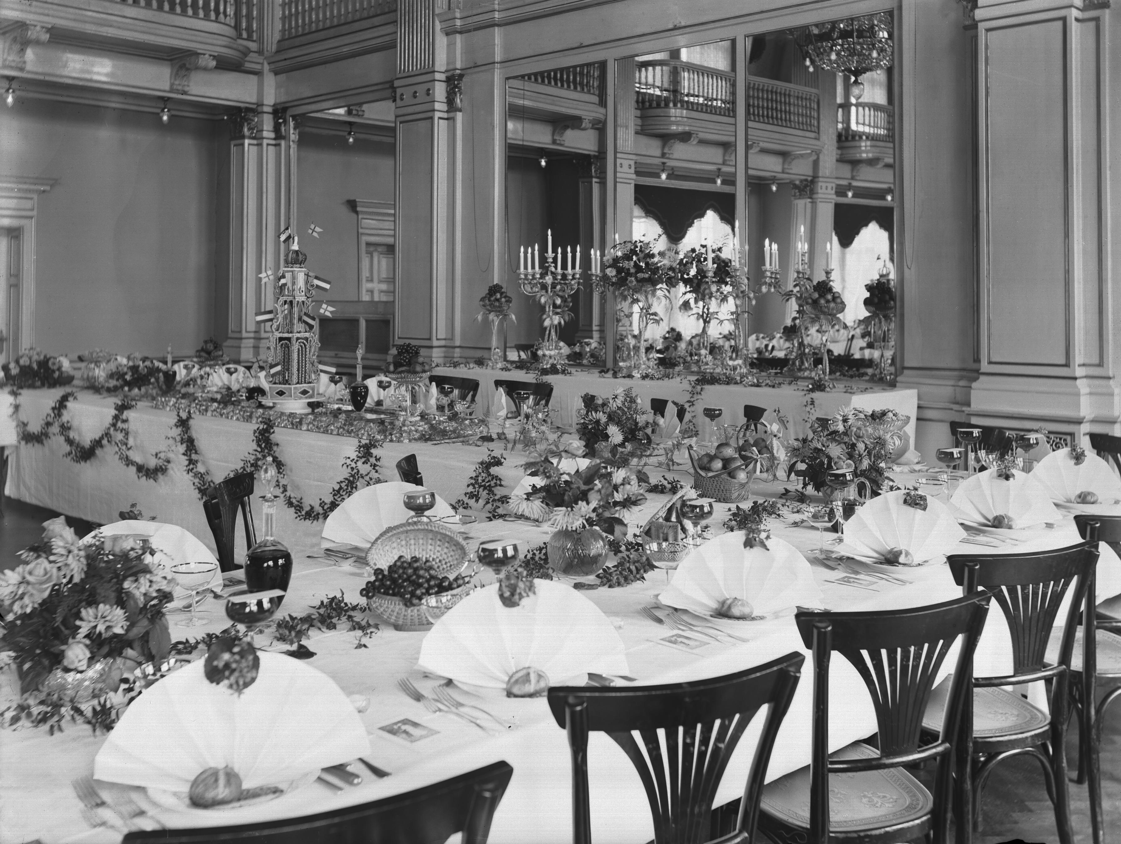 Hippodromen. Festsalen med dukade middagsbord. Kalendegatan 12