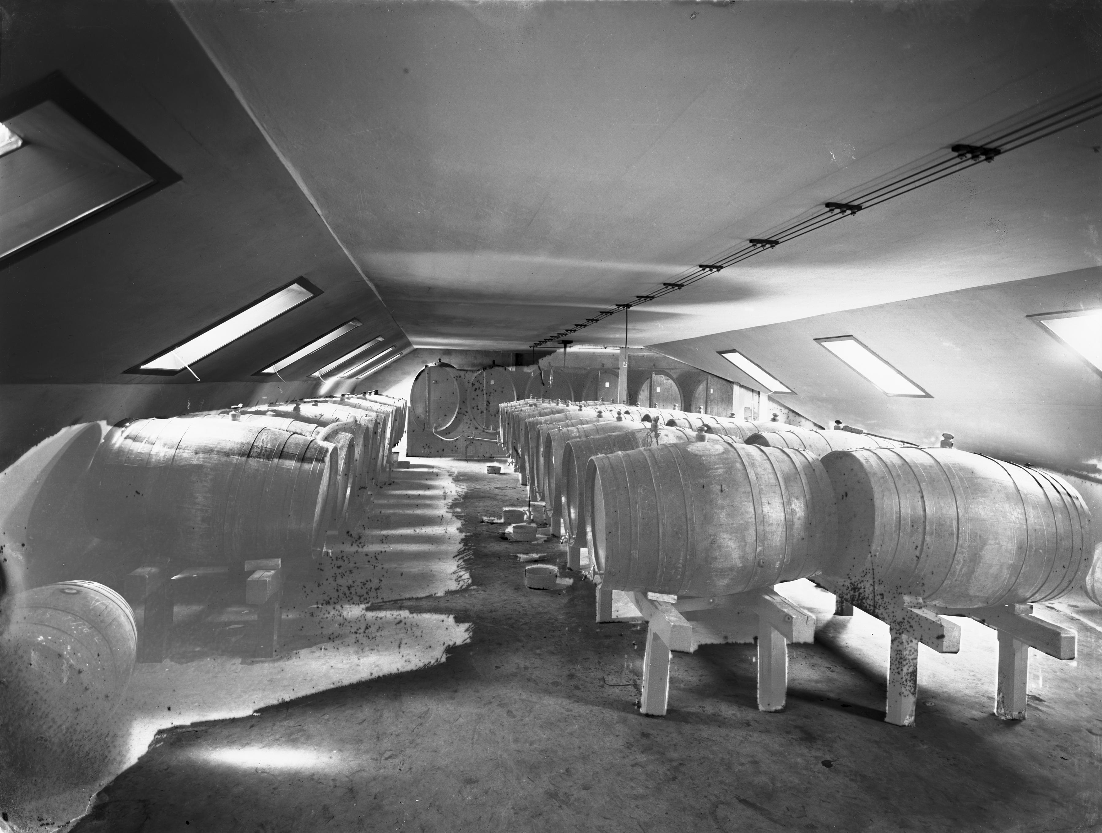 Interiör från vinfirman Ad. Faxe & Söner. Vinlager.
