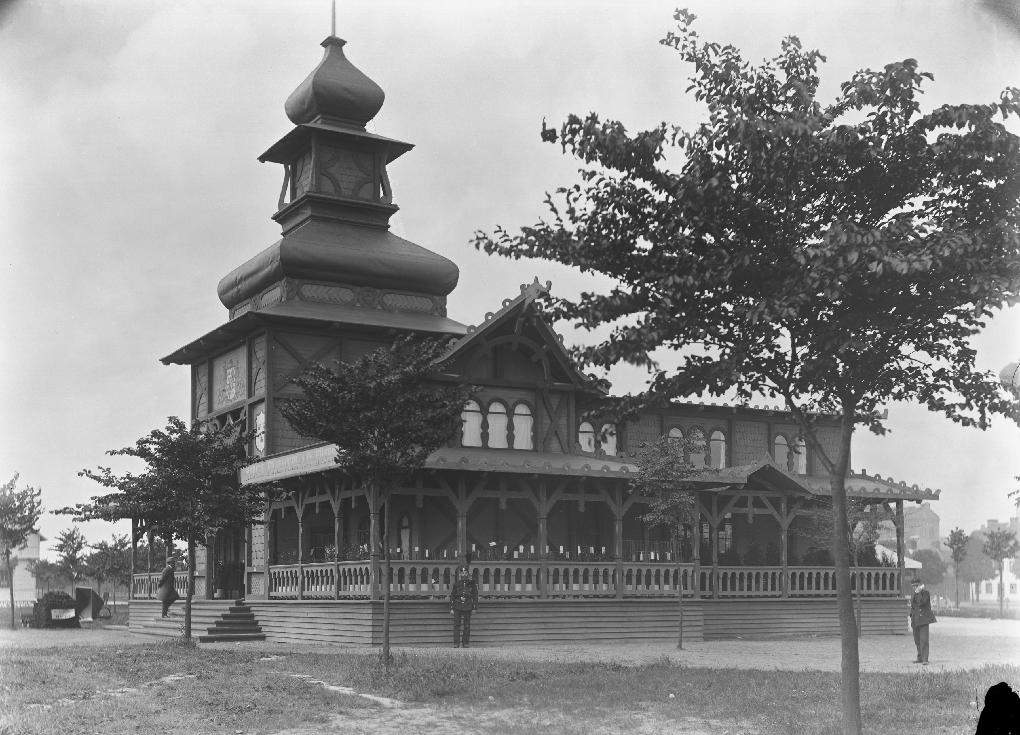 Lantbruksmötet i Rörsjöstaden 1896. Parkpaviljong av kinesisk karaktär. Utställare: eventuellt Mosskulturföreingen, Moritz Fraenkel & Co, Göteborg.