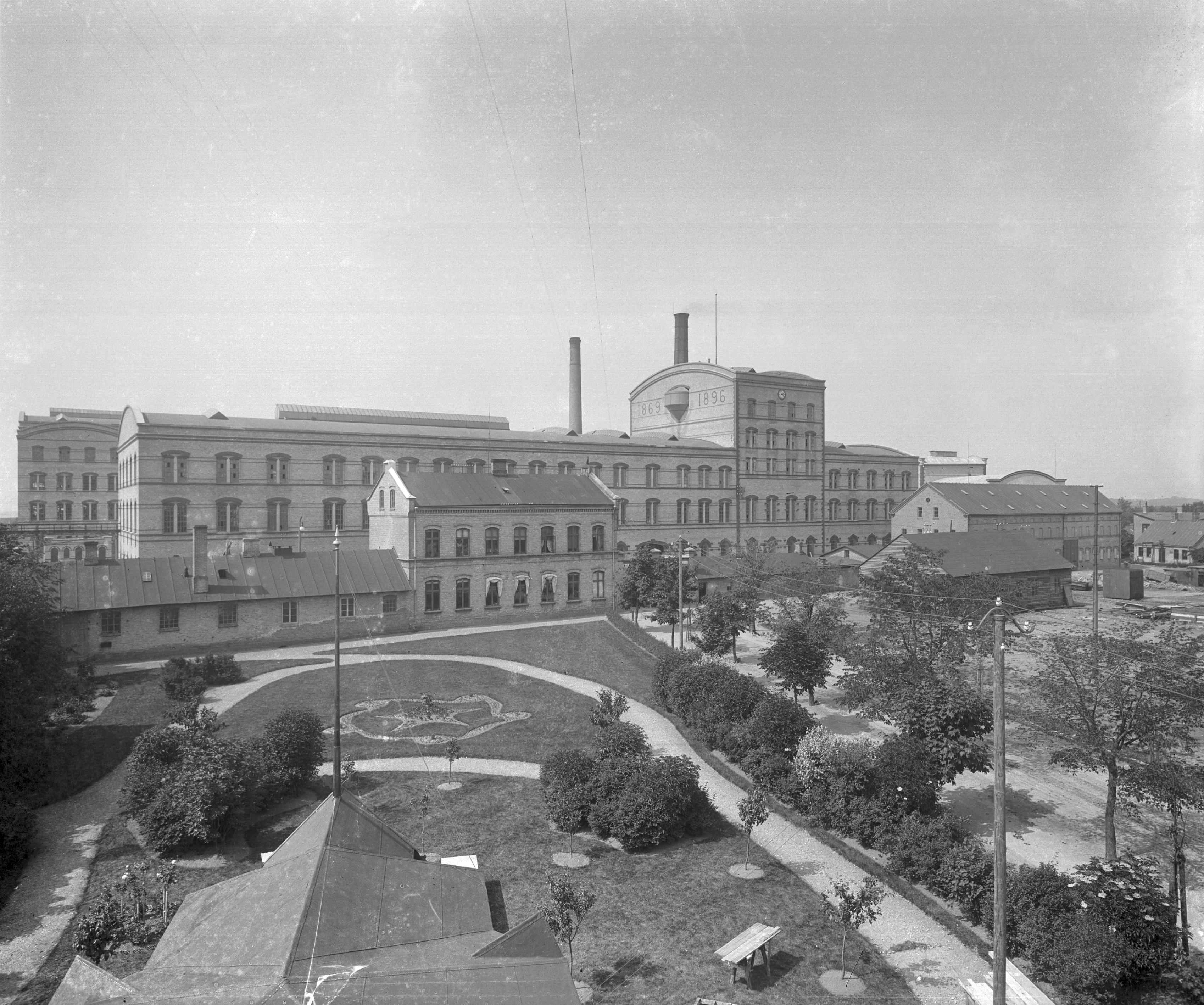 EF 001046 :: sockerbruk, flaggstång, telefonledning, träd
