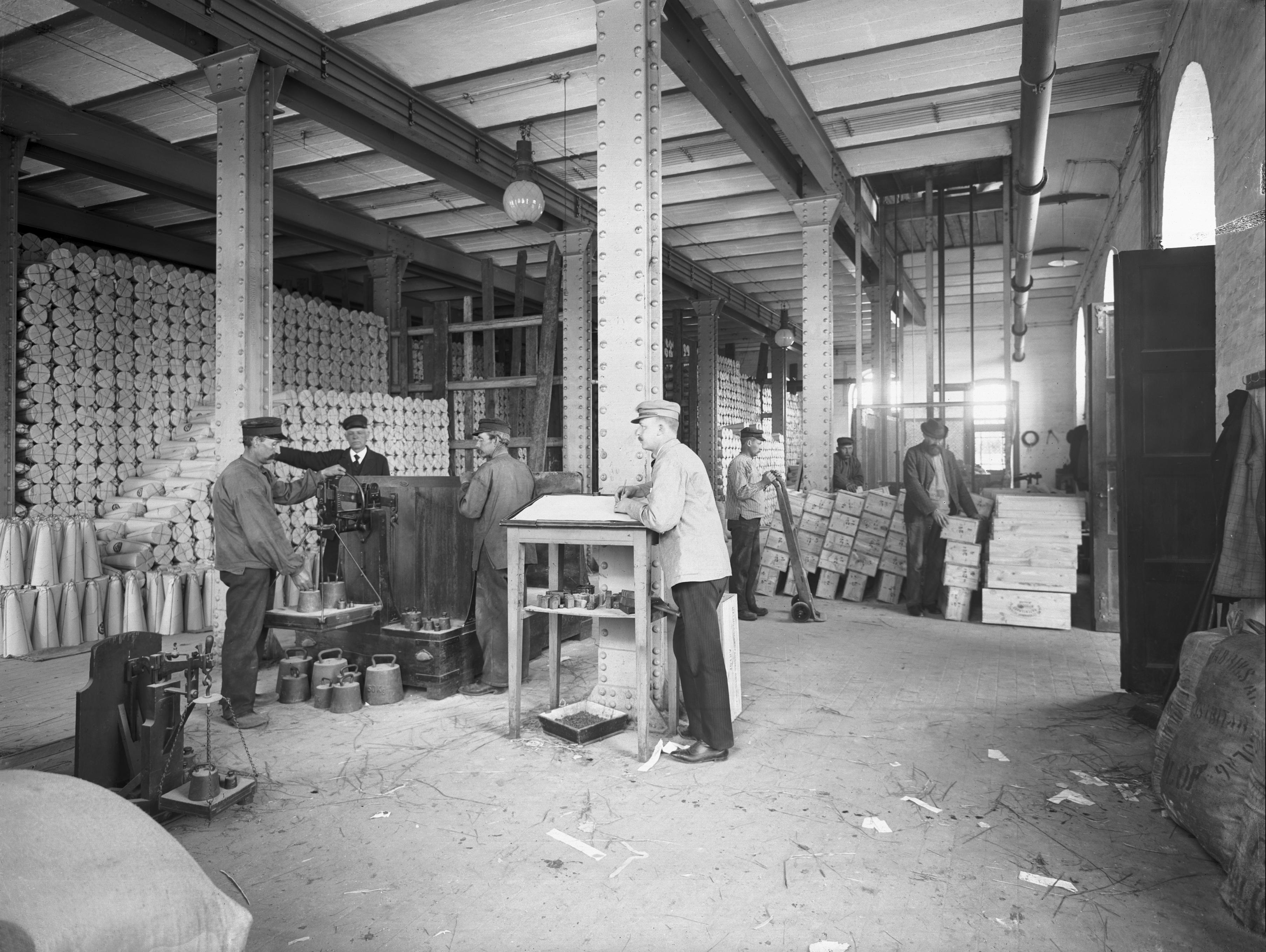 EF 001065 :: sockerbruk, sockerbrukspersonal, våg, vägning, inomhusbelysning
