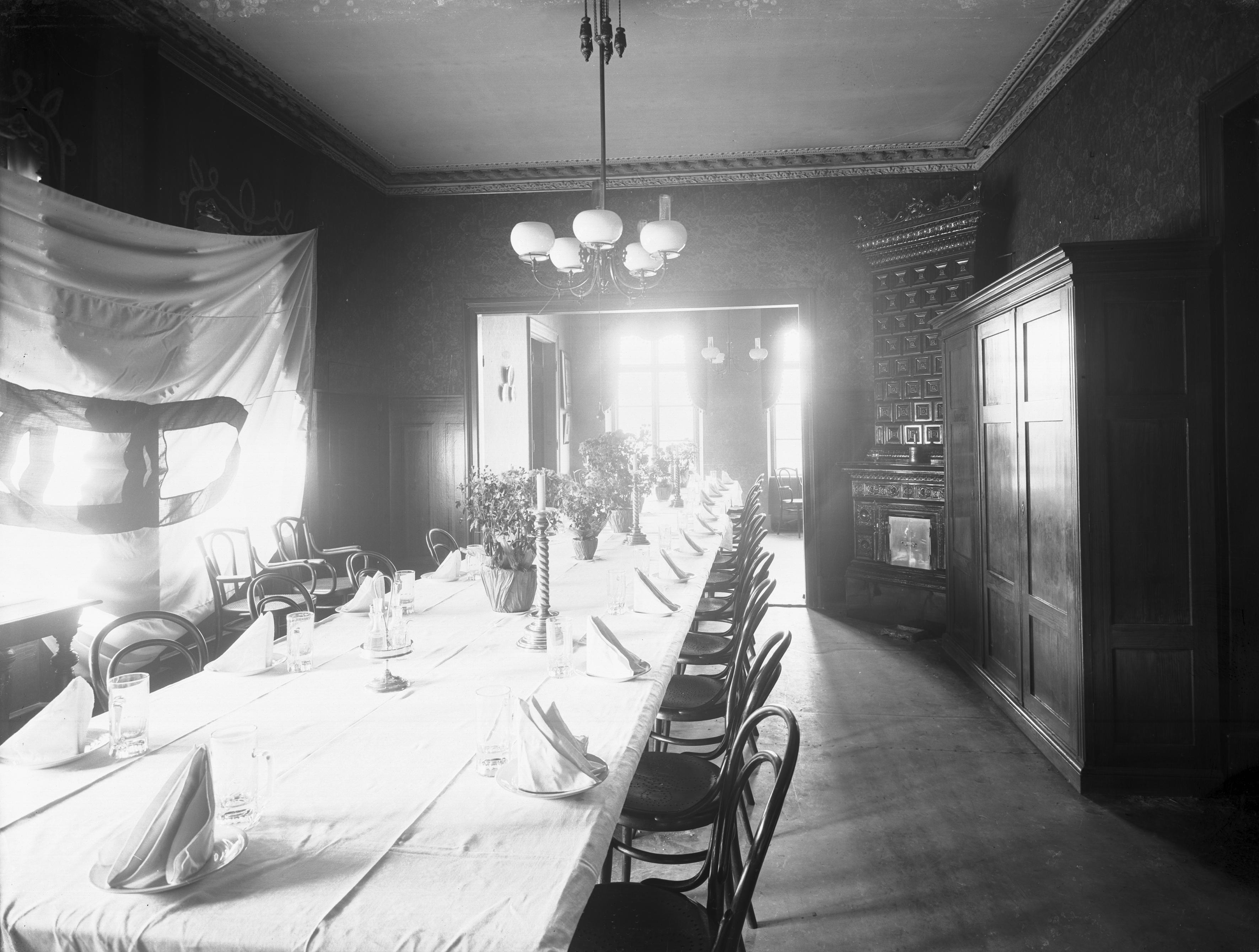 Odd Fellow ordens lokaler vid Stortorget. Sällskapsrummen, matsalsinteriör. 1901.