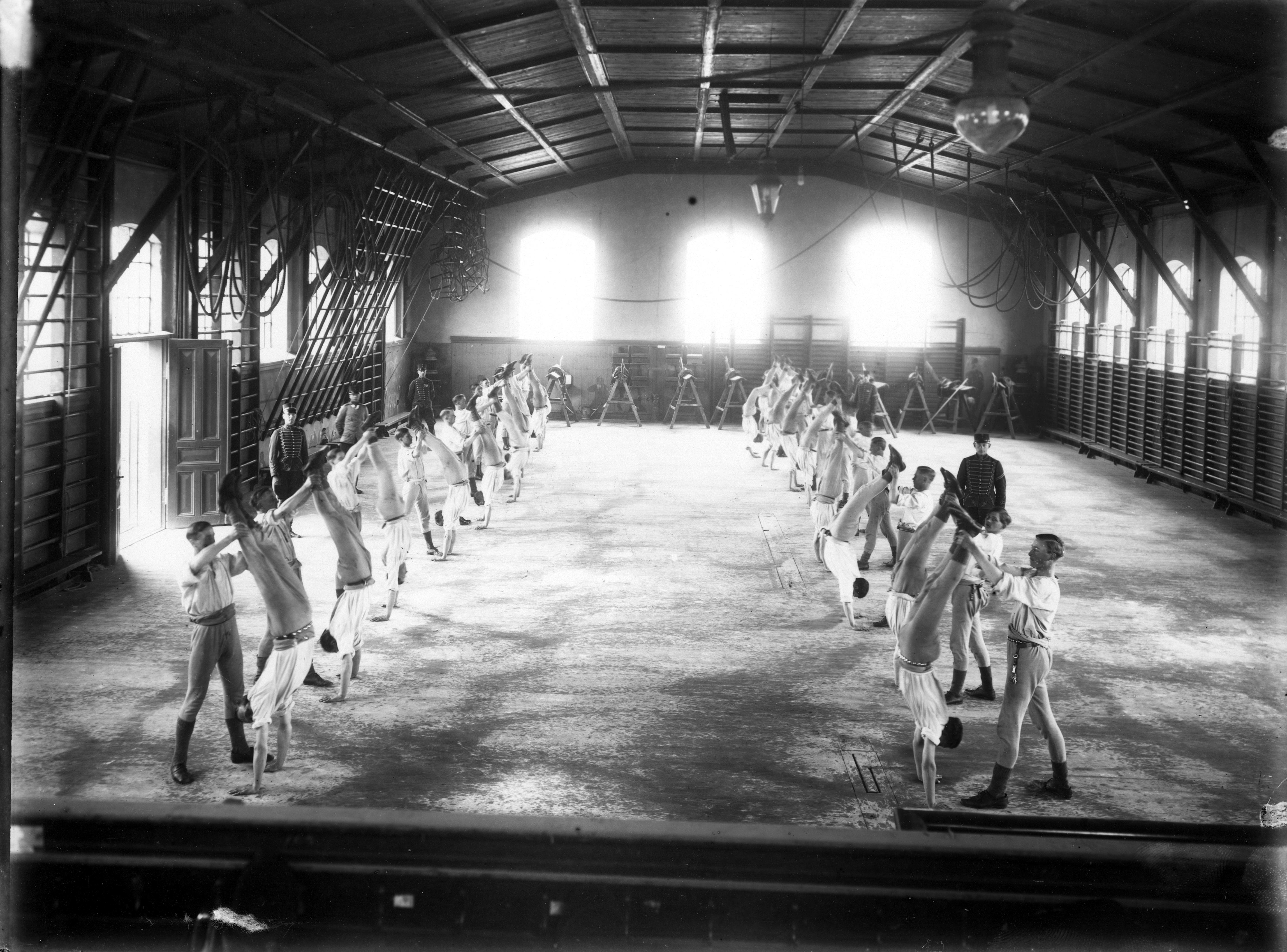 Kronprinsens husarregemente. Gymnastikövning i gymnastiksalen.