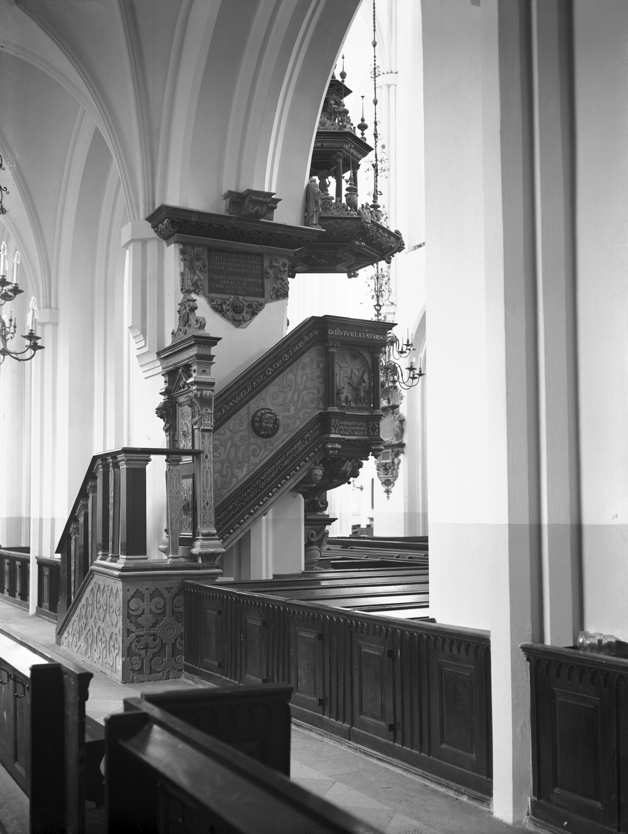 Interiör från S:t Petri kyrka 1914. Predikstolen.