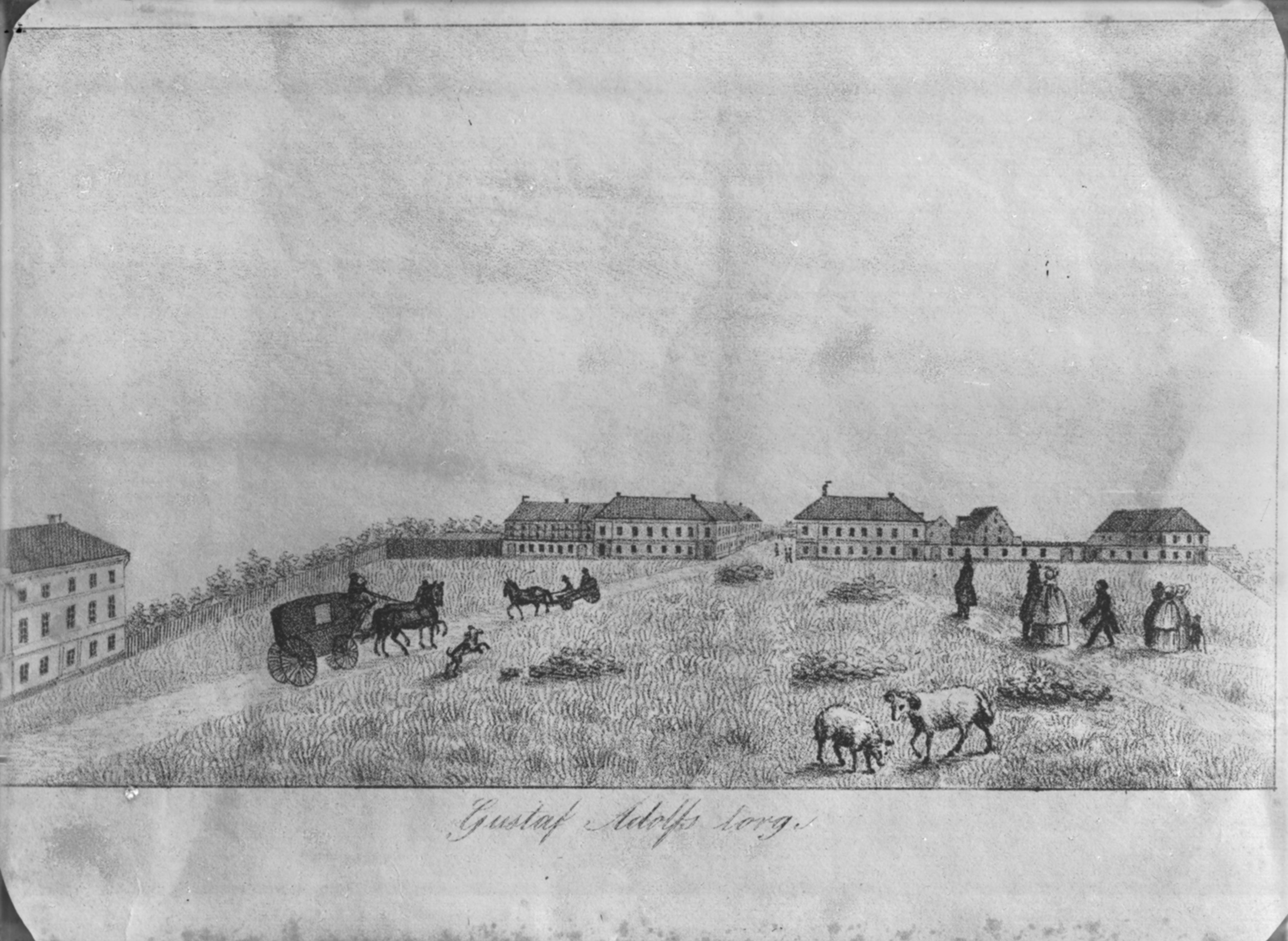 Gustaf Adolfs Torg. Teckning på 1840-talet av Carl Conrad Dahlberg.