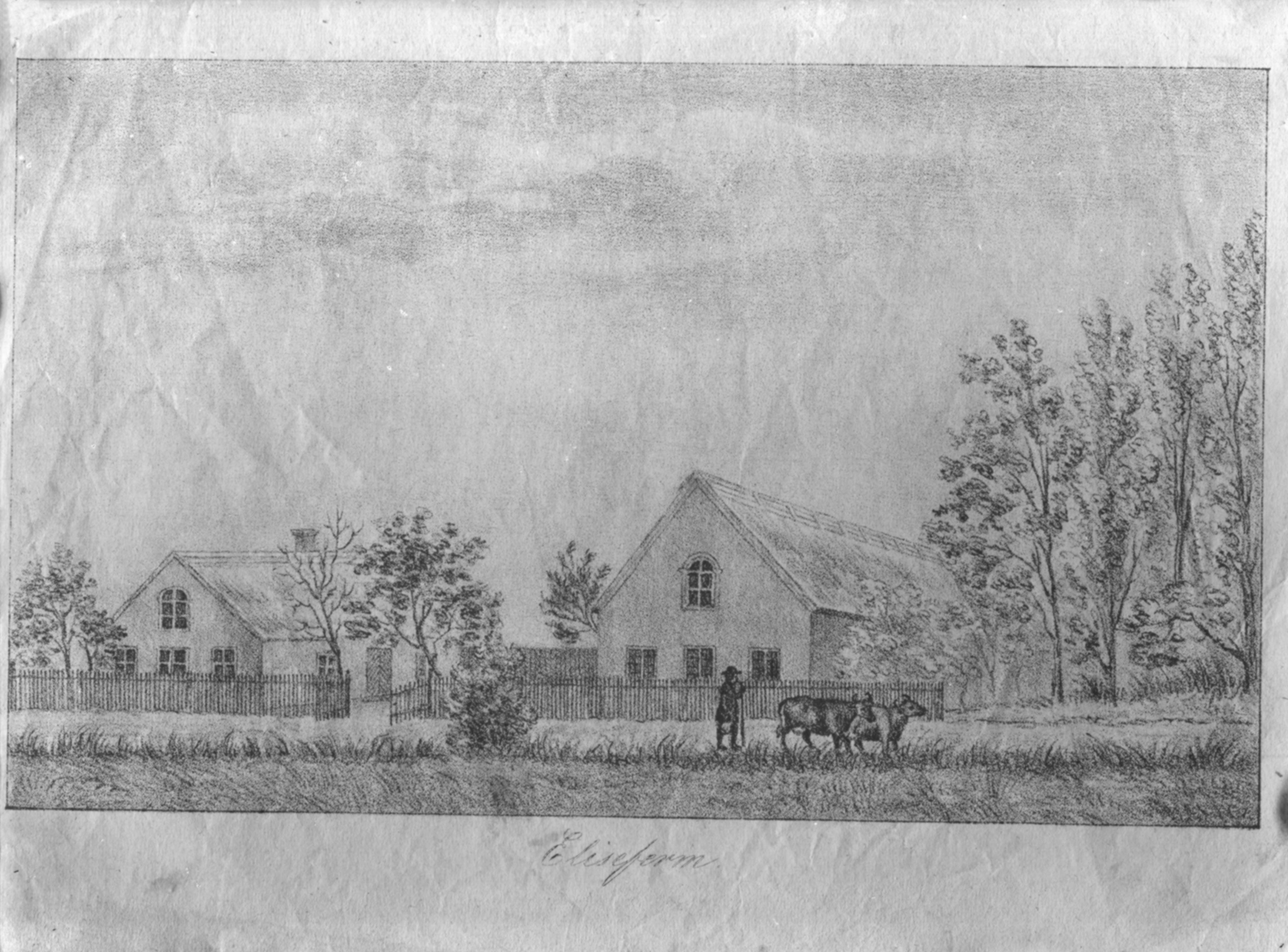 Elisefarm. Tecknig på 1840-talet av Carl Conrad Dahlberg.