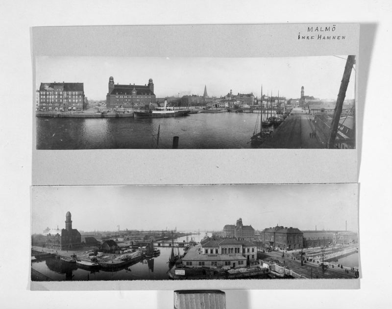 Utsikt över Inre Hamnen och staden, tagen från en lossningskran på Västra Hamnsidan