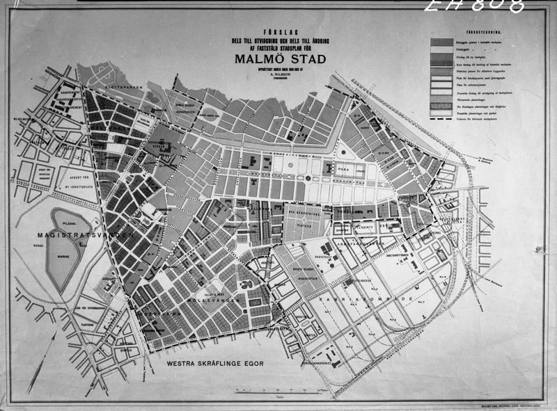 Förslag, dels till utvidgning och dels till ändring af fastställd stadsplan för Malmö Stad