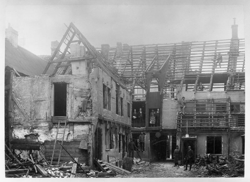 Rivning av Hultmanska huset i hörnet av Södergatan och Balzarsgatan