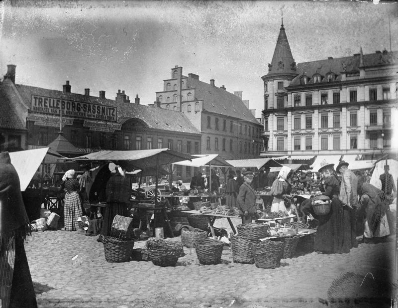Torghandel, kvinnor i schalett och hatt. Nordvästra delen