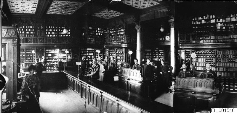 EH 001516 :: apoteksinteriör, apotek, män, kvinnor