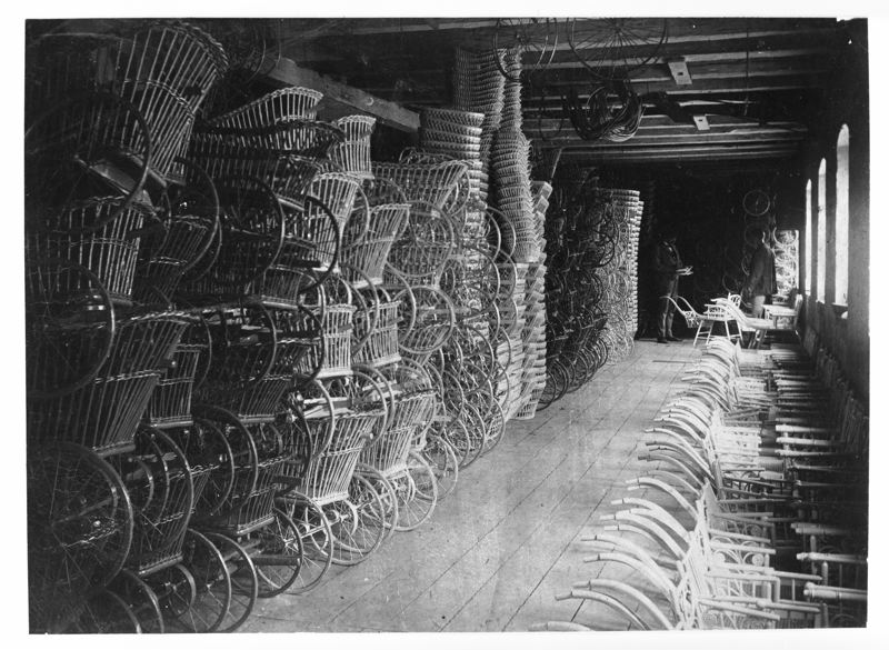 A.W. Nilssons Barnvagnsfabrik. Interiörbild från fabriken, lagret
