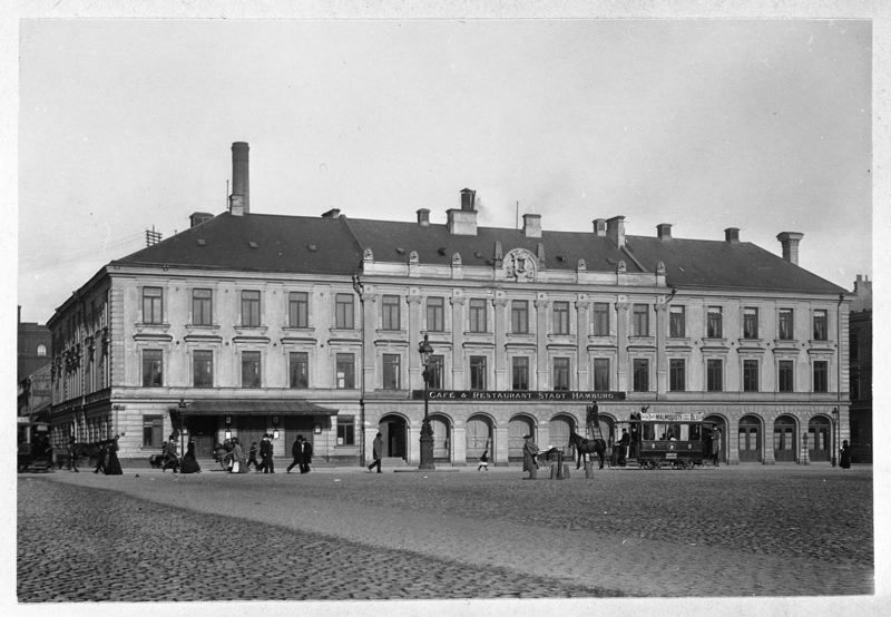 Teatern och cafe och restaurant Stadt Hamburg Hästspårvagn