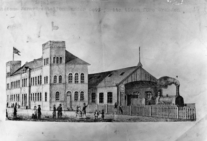 Teckning. Centralstationen, före branden 1866