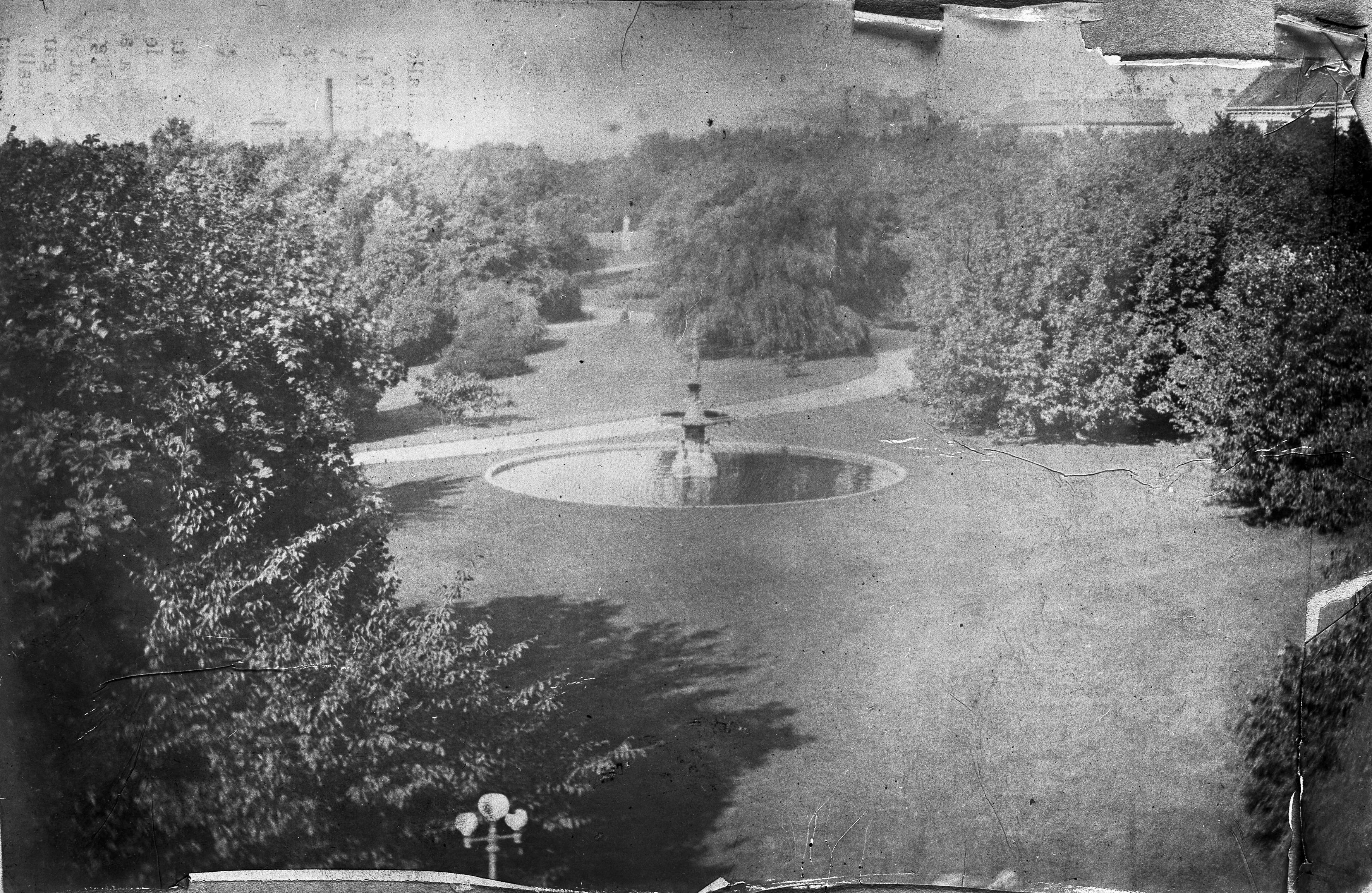 I siktlinjen förbi fontänen, som inköptes från Paris och uppfördes 1881 som gåva av färghandlare Winberg, ses den första "Diana i badet"-statyn skänkt av kemifirman Bönnelyche & Thuröe samma år. Den blev nermonterad 1919 då dens sandsten skulle börjat vittra och lades i kommunalt förråd där den sist sågs 1974.