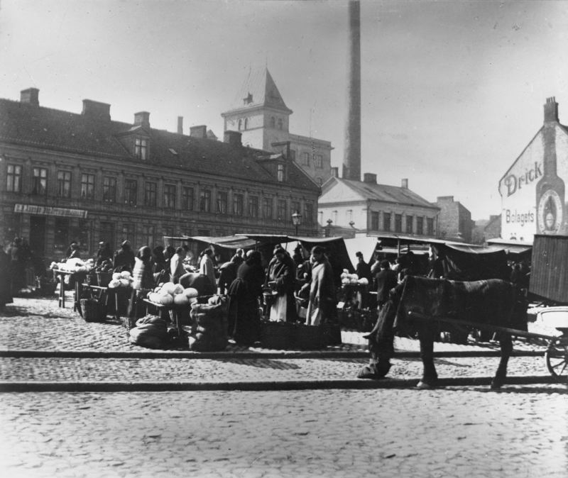 Föreningstorget, där nu S. Saluhallen uppförts. Torghandel