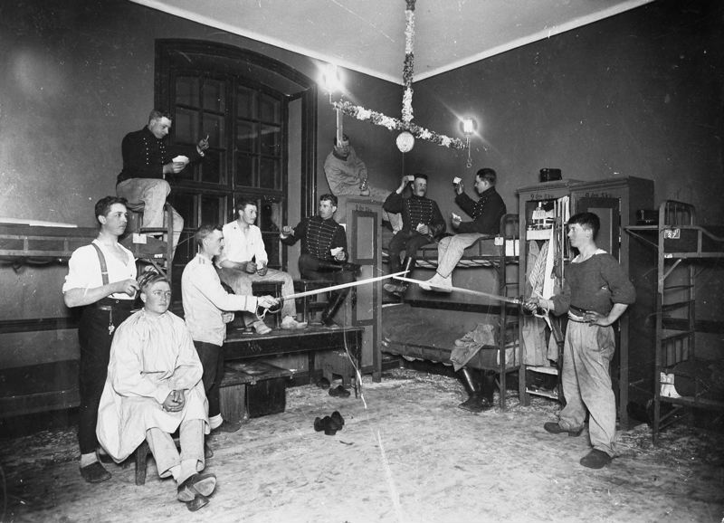 Husarkasernen, logementets interiör. Tio män