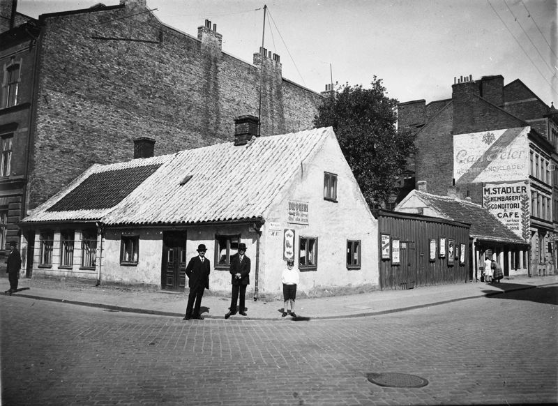 STOR rättelse: Fotot föreställer faktiskt hörnan Stora Kvarngatan och Norregatan i kvarteret nr. 13 Jerusalem. Huset till vänster kant finns kvar att beskåda idag utan förändringar på fönstersmygar och ornamenter. Hörnhuset här och det till höger, skall varit uppförda ca. 1813. Det inhyste tidigare Östra Småbarnsskolans lokaler en tid under 1860-70-talet. Den flyttades sedan till Värnhem. I huset är på bilden just då en toffelfabrik, vilket illustreras på skylten där som fanns åtminstone under 1930-talet. Denna bild florerar i grupper med just denna adress också. Till och med stadsarkivarien Staffan Gudmundsson (VIF) tillförde dels att han bodde i vänsterkanthuset när han var liten och dels kunde även tillföra att låghusen på bilden revs 1933. Ett nytt större hus uppfördes där 1934. Så, M. Stadler måste alltså antingen bara haft sin reklam på väggen, (även om det på en liten utstickande skylt i högerkanten kan utläsas "Café, Conditori"), eller alltså haft en filial där. Så mina uppgifter om Stadler får flyttas bort till en annan mer sann bild.Atatlas2025-01-04 10:49