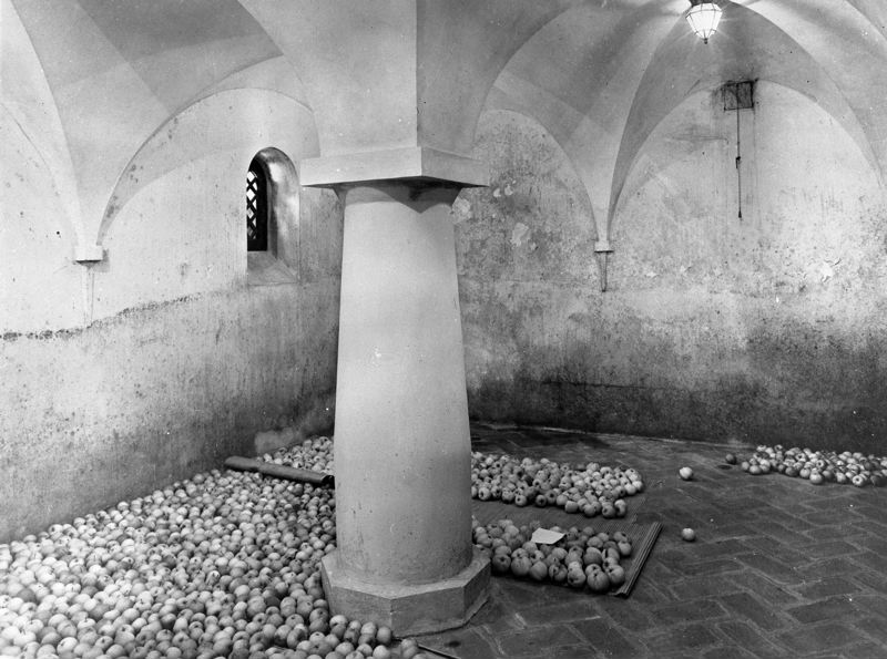 Widegården, källarinteriör. Utlagda äpplen