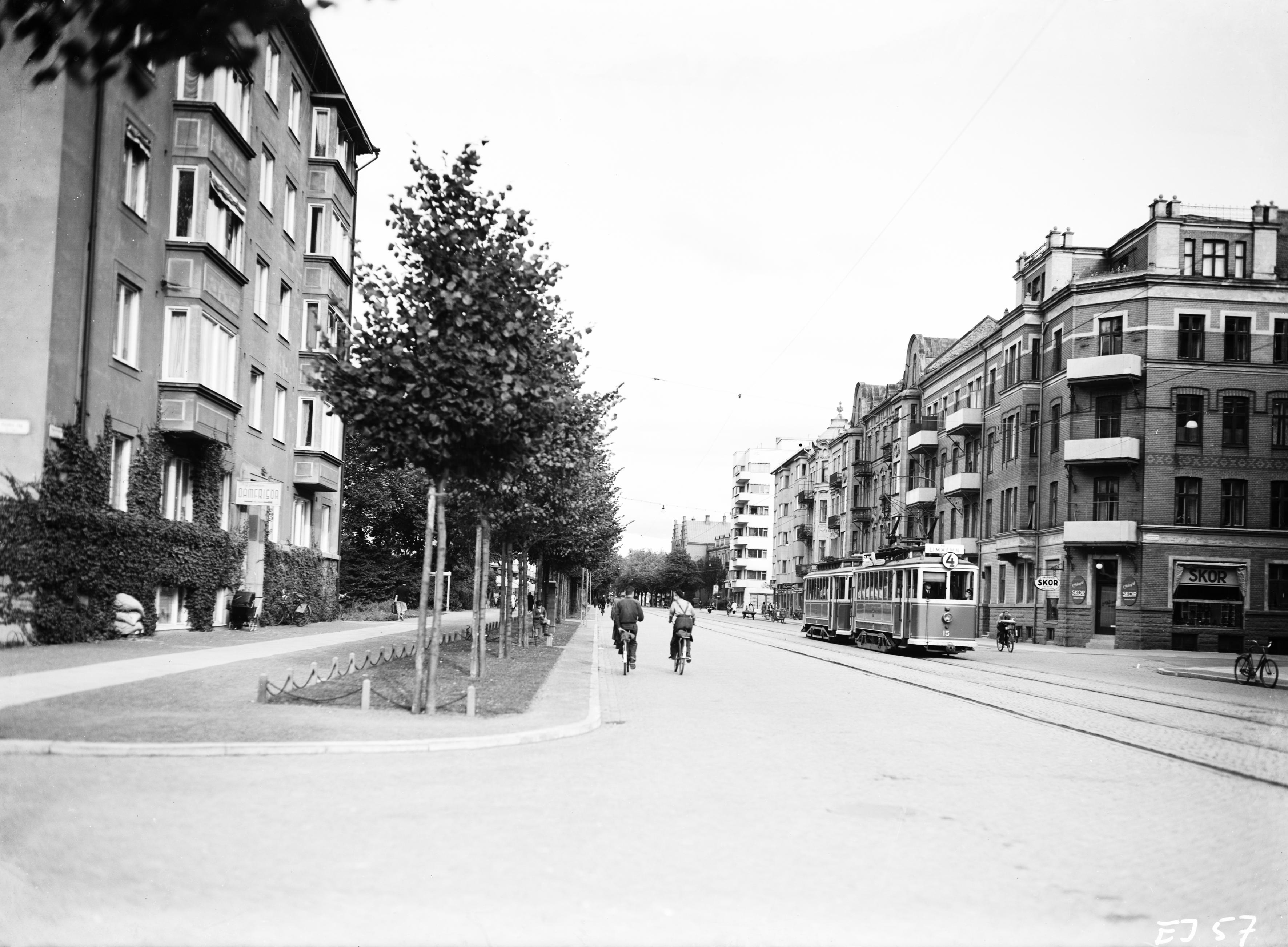 - Gatubild med spårvagnen "Limhamn".