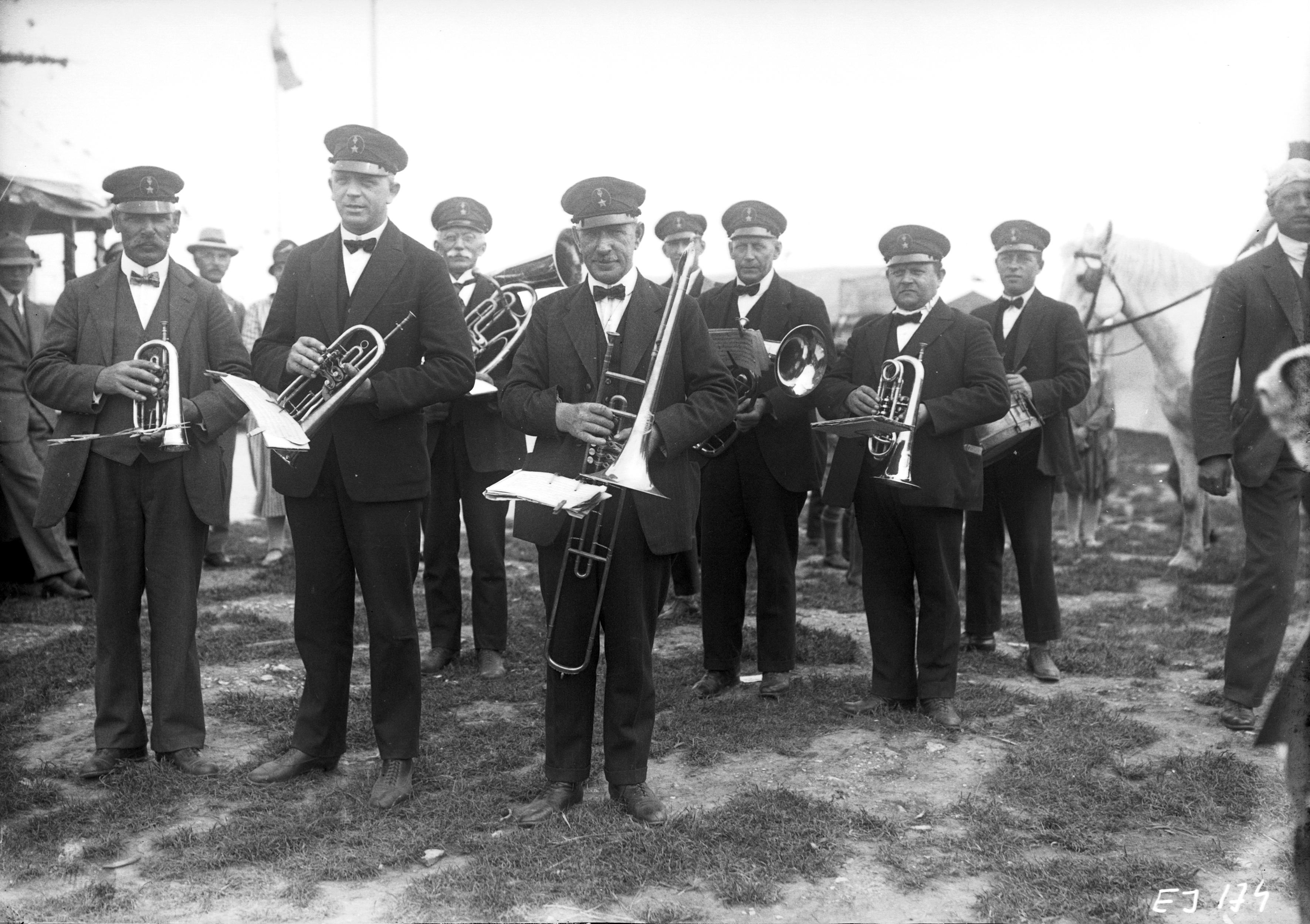 EJ 000174 :: musiker, musikkår, trombon, kornett