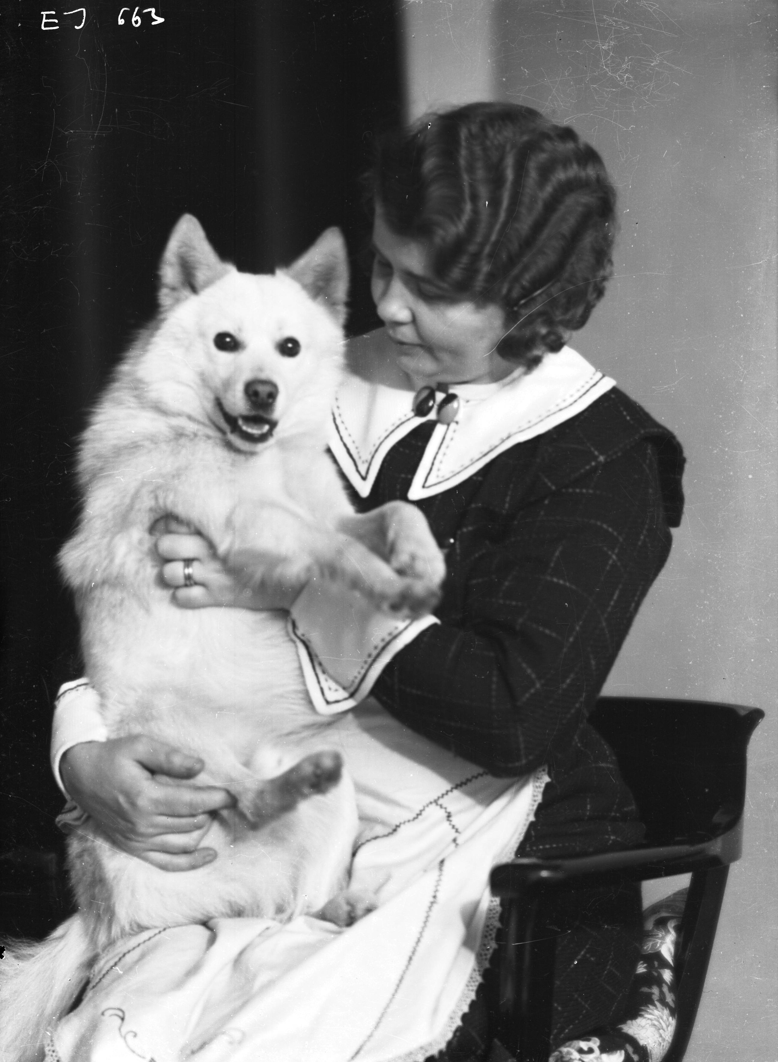 Fru Jeppsson med sin hund, interiörbild
