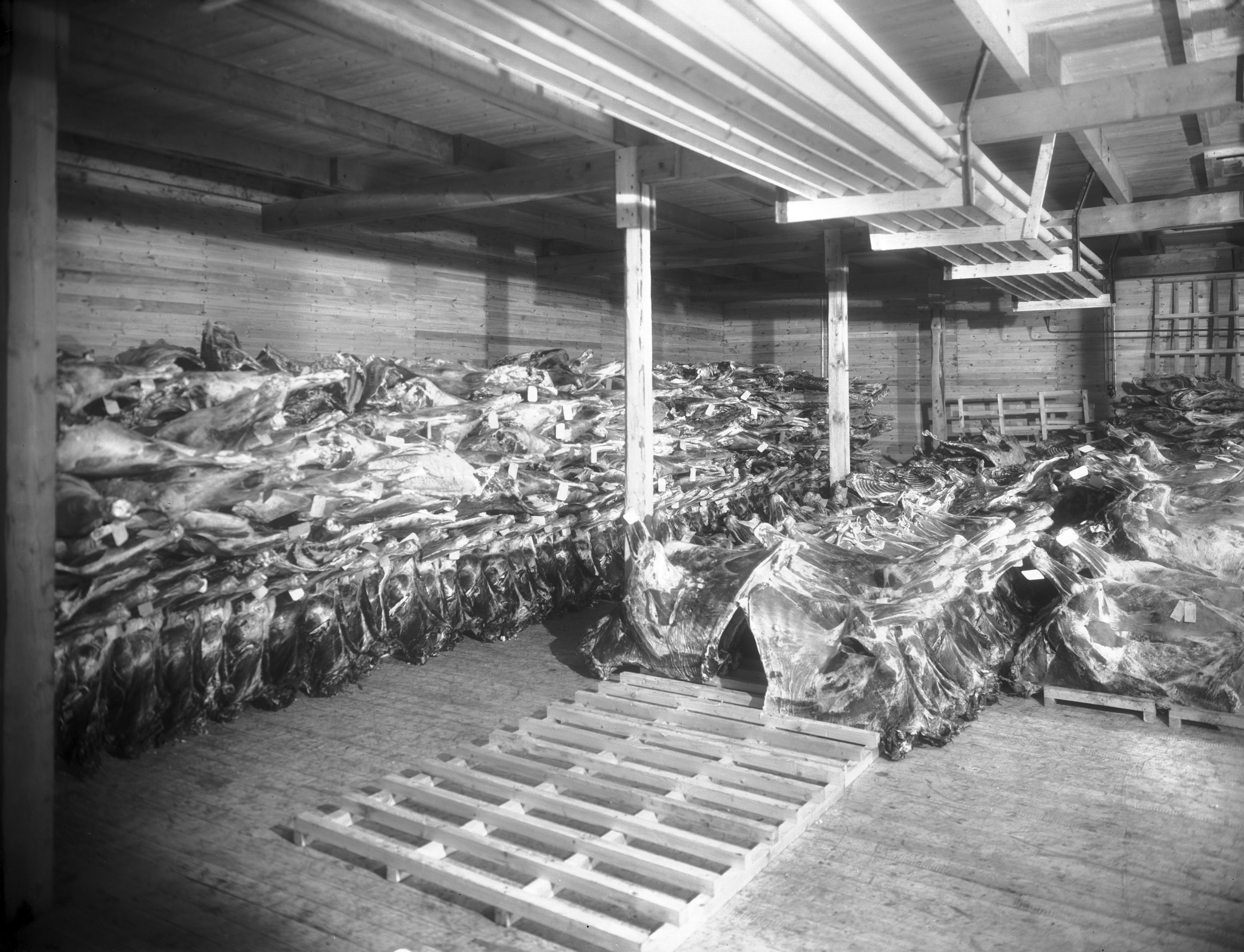 Interiörbild från Malmö Fryshus, " kylhuset " djurkroppar